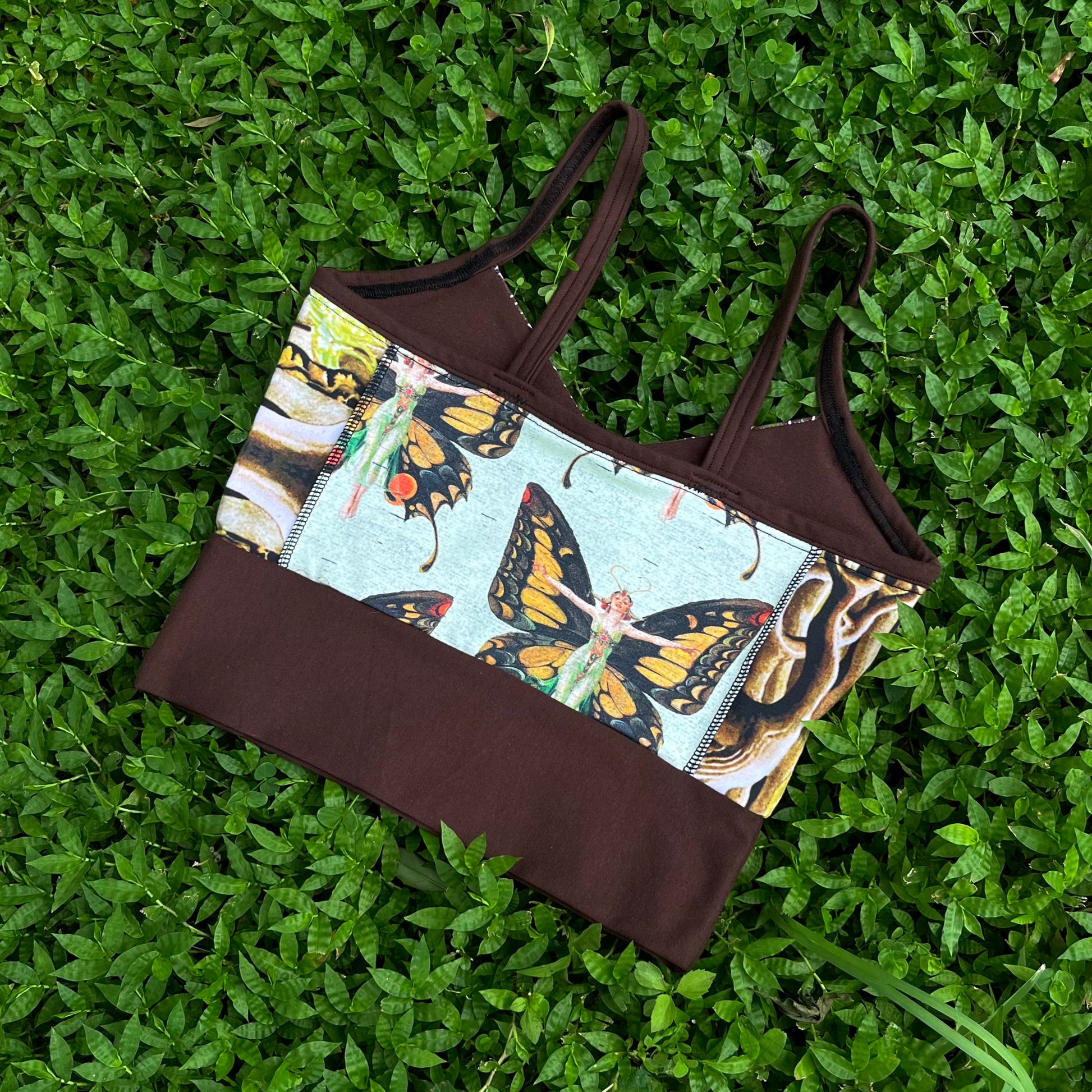Mostly all patterned fabric is 93% Cotton 7% Spandex - Itās a 4 way stretch thatās very comfortable and allows for movement & breathability while also holding you in just right, contents of solid fabrics vary because I tend to switch them up, but I normally stick with natural fibers. 99% of everything I make is fire safe and can confidently be worn while flowing with fire props. Feel free to email me if you have questions about a specific one :)