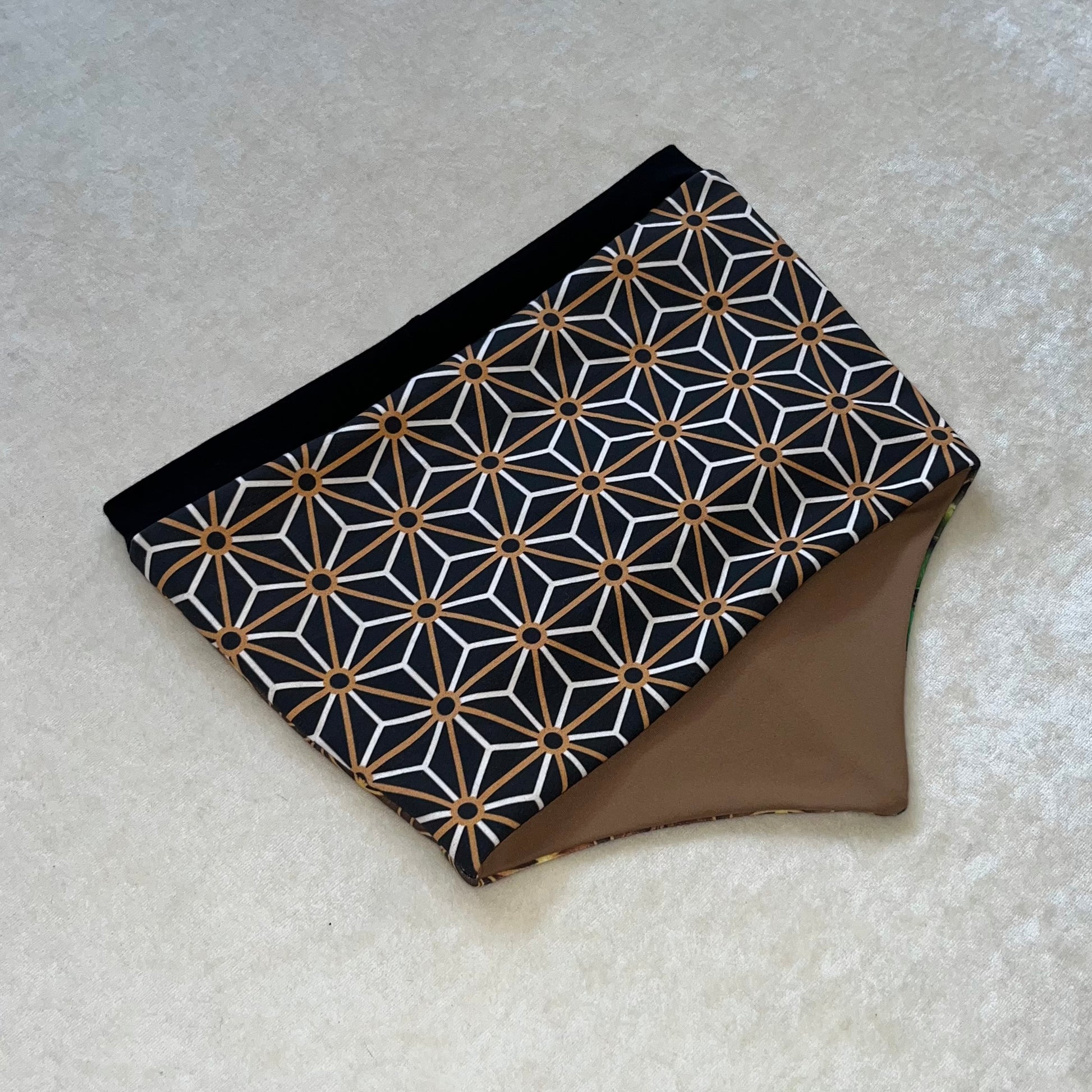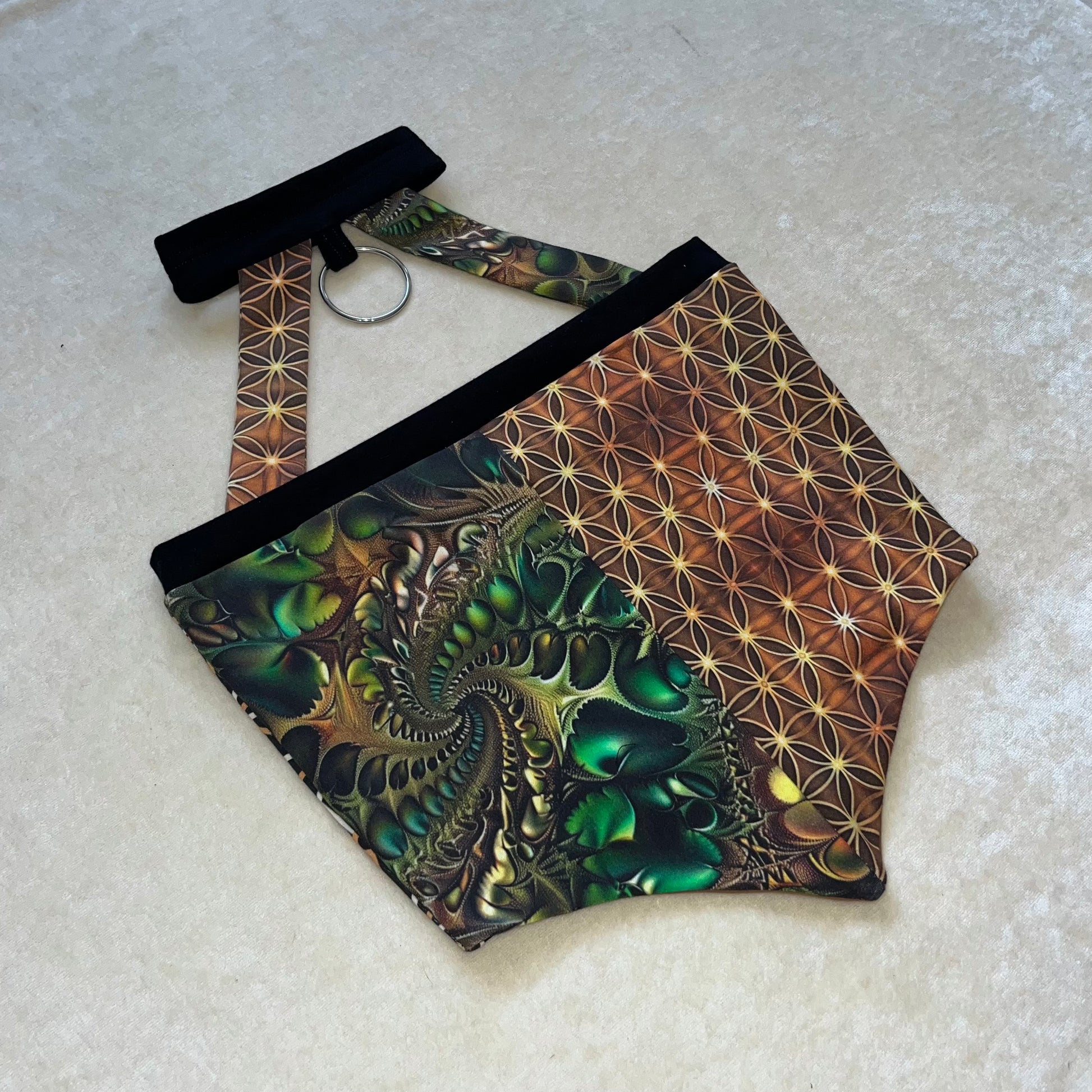 Mostly all patterned fabric is 93% Cotton 7% Spandex - It’s a 4 way stretch that’s very comfortable and allows for movement & breathability while also holding you in just right, contents of solid fabrics vary because I tend to switch them up, but I normally stick with natural fibers. 99% of everything I make is fire safe and can confidently be worn while flowing with fire props. Feel free to email me if you have questions about a specific one :)