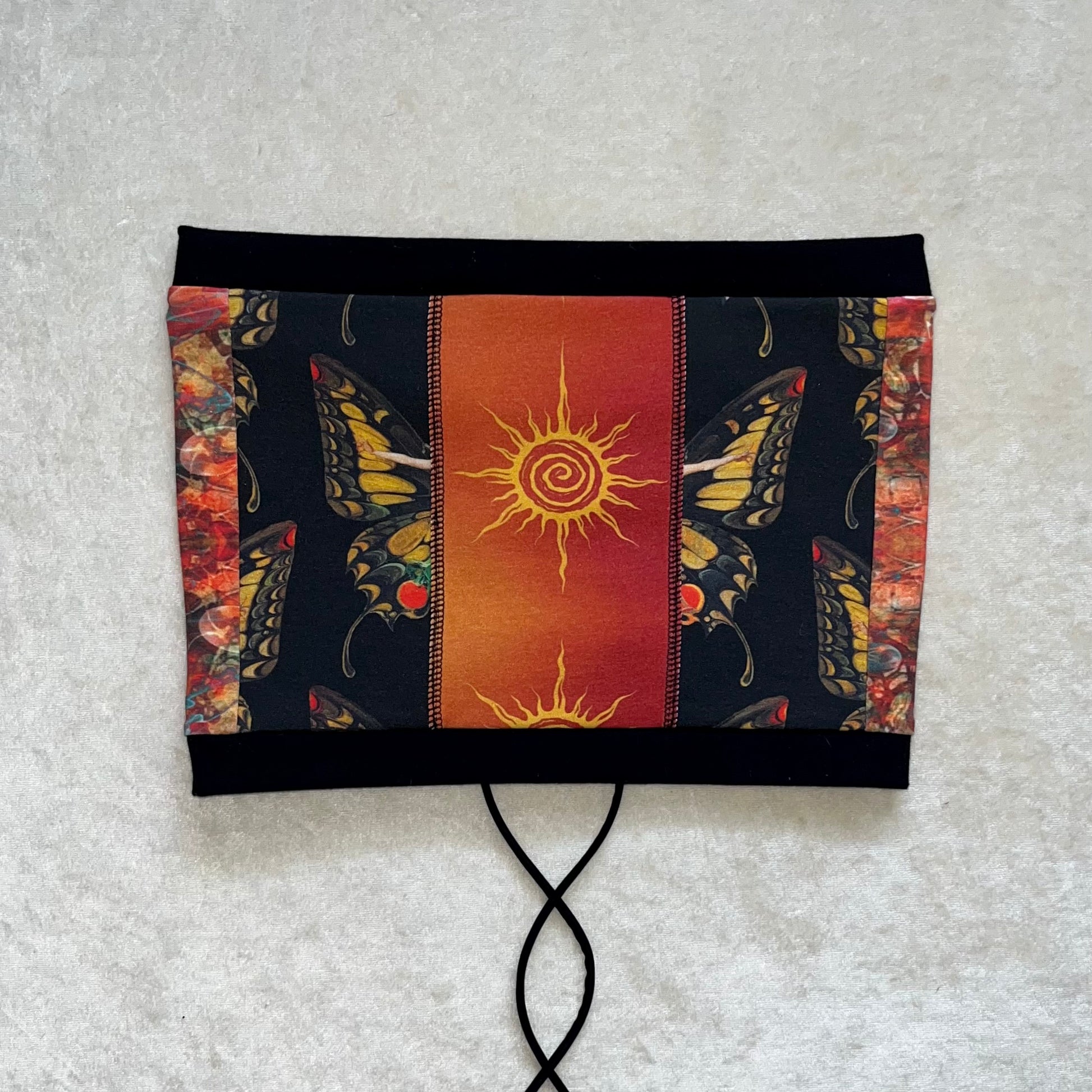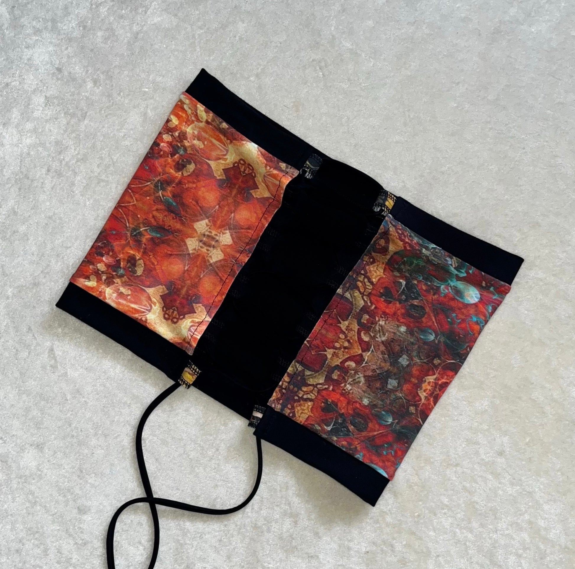 Mostly all patterned fabric is 93% Cotton 7% Spandex - It’s a 4 way stretch that’s very comfortable and allows for movement & breathability while also holding you in just right, contents of solid fabrics vary because I tend to switch them up, but I normally stick with natural fibers. 99% of everything I make is fire safe and can confidently be worn while flowing with fire props. Feel free to email me if you have questions about a specific one :)
