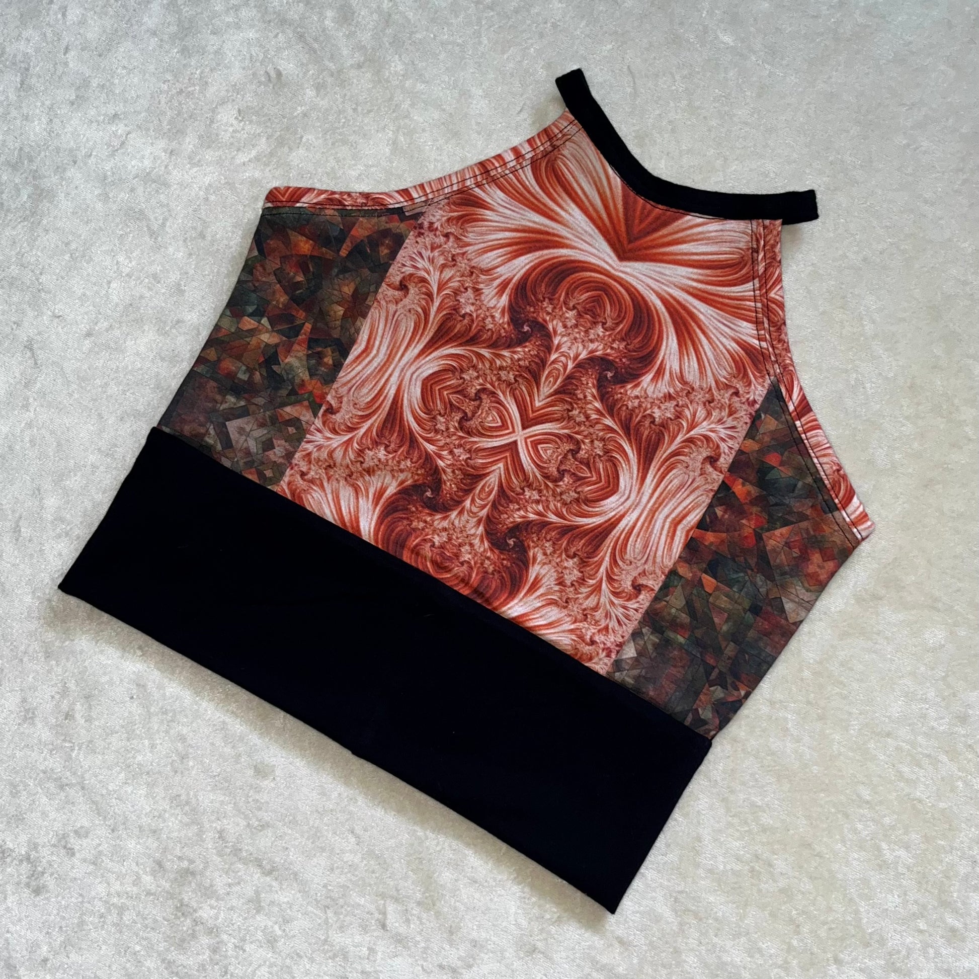Mostly all patterned fabric is 93% Cotton 7% Spandex - It’s a 4 way stretch that’s very comfortable and allows for movement & breathability while also holding you in just right, contents of solid fabrics vary because I tend to switch them up, but I normally stick with natural fibers. 99% of everything I make is fire safe and can confidently be worn while flowing with fire props. Feel free to email me if you have questions about a specific one :)