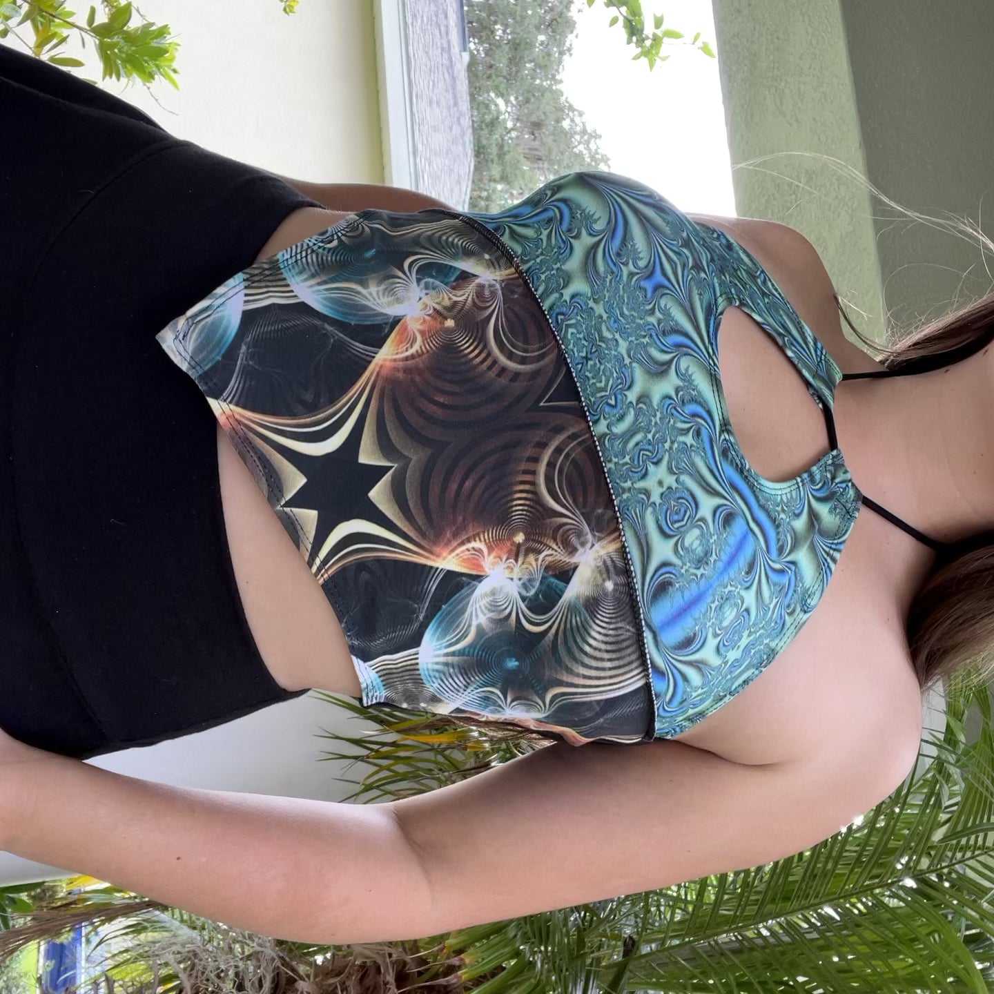Mostly all patterned fabric is 93% Cotton 7% Spandex - It’s a 4 way stretch that’s very comfortable and allows for movement & breathability while also holding you in just right, contents of solid fabrics vary because I tend to switch them up, but I normally stick with natural fibers. 99% of everything I make is fire safe and can confidently be worn while flowing with fire props. Feel free to email me if you have questions about a specific one :)