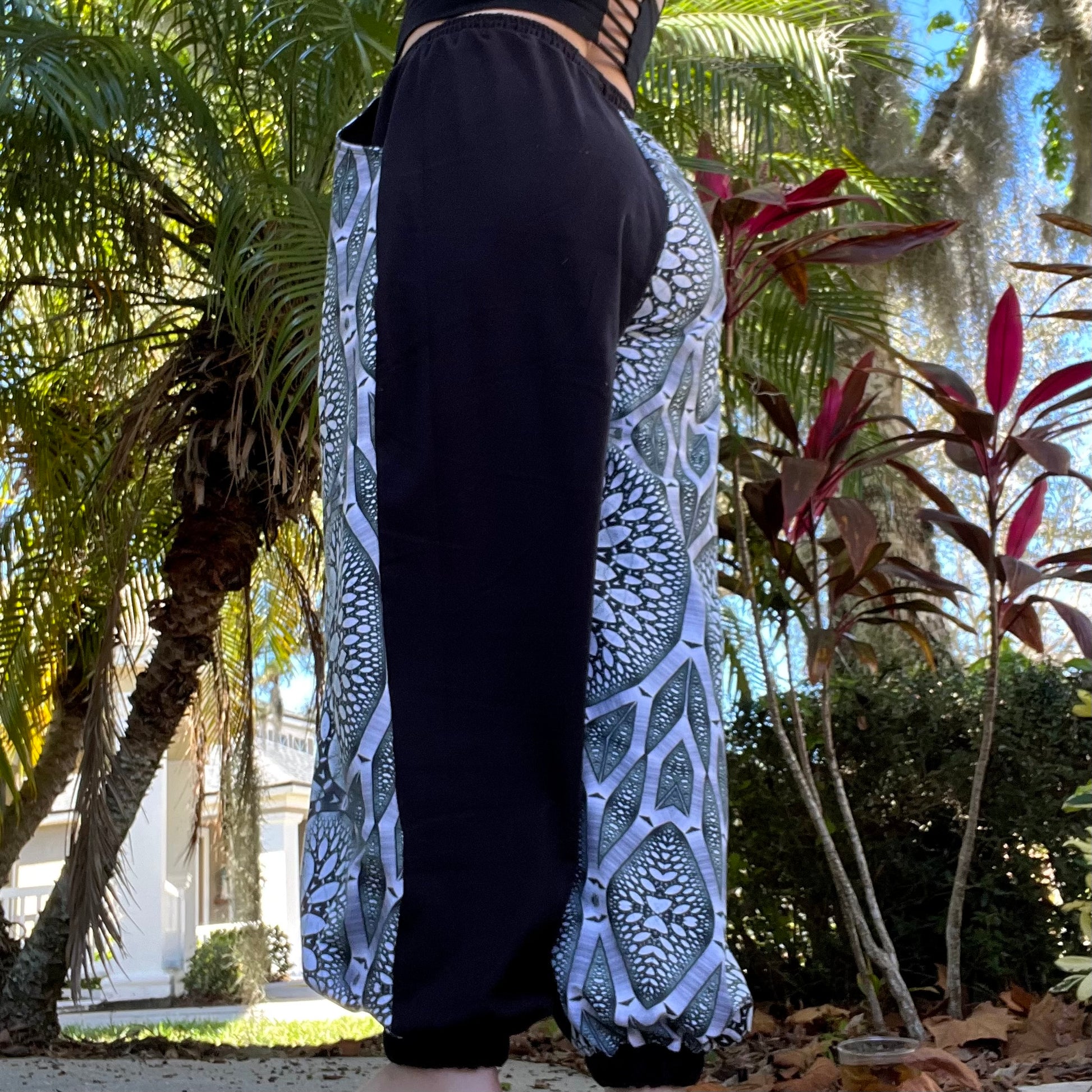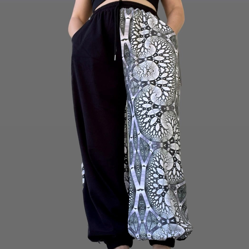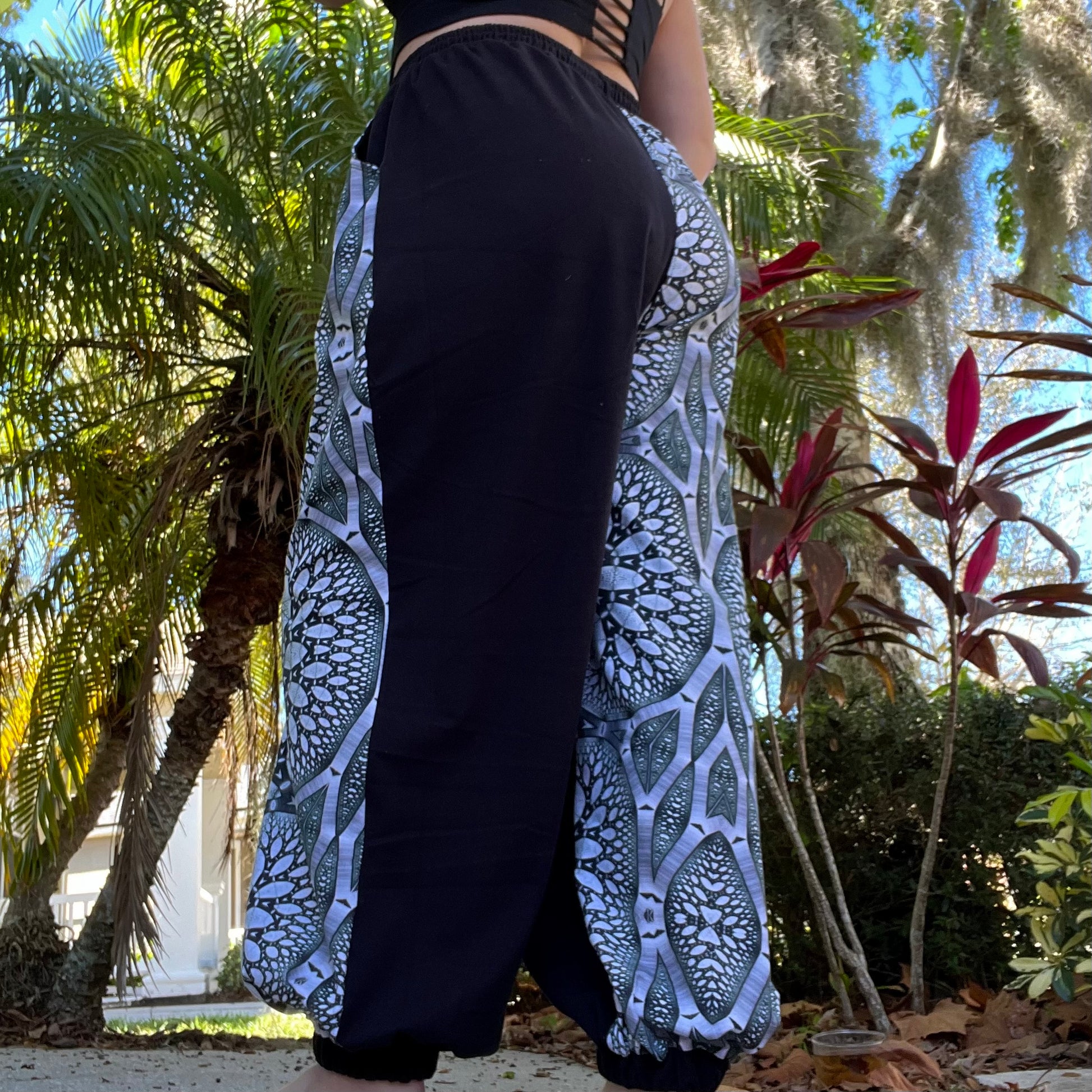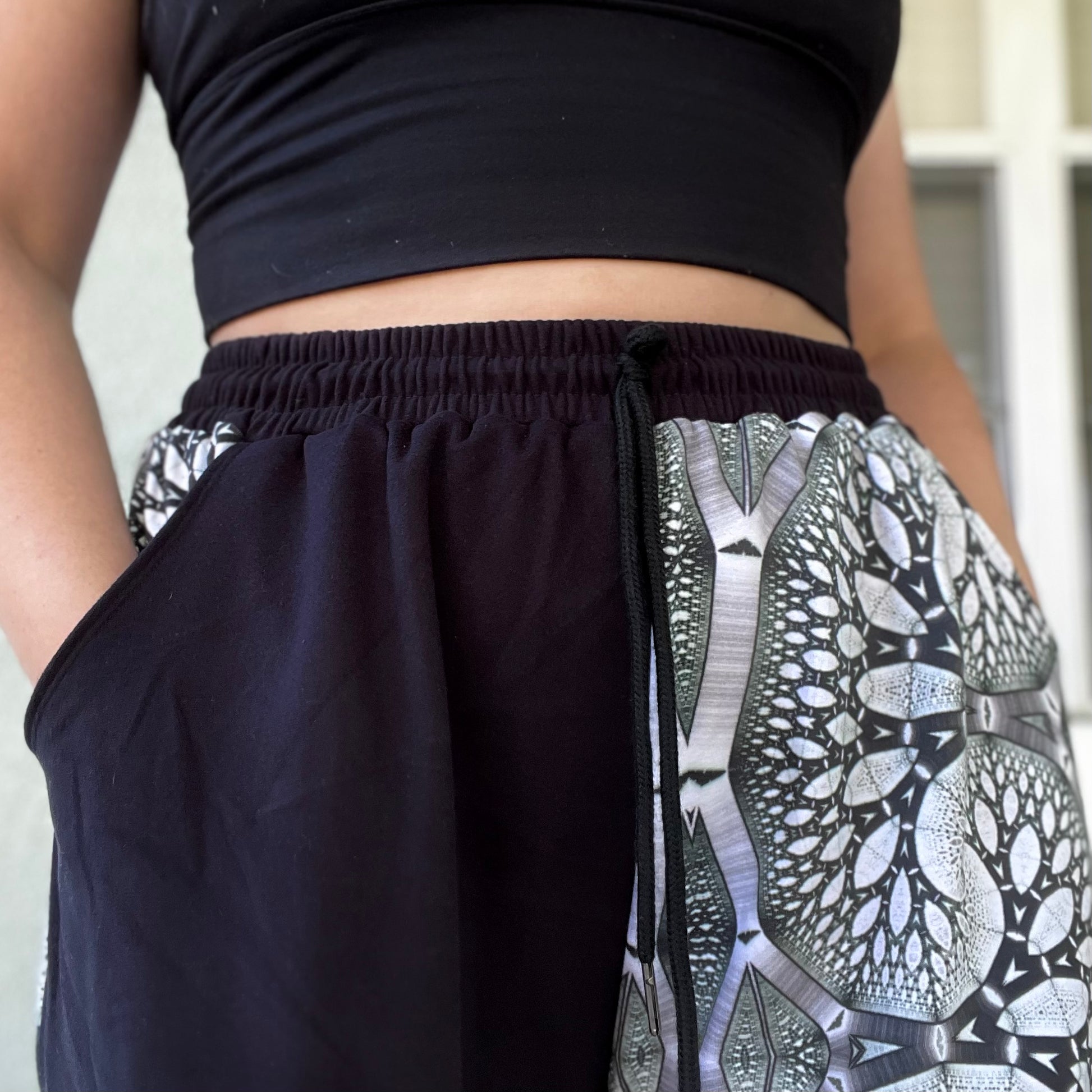 Mostly all patterned fabric is 93% Cotton 7% Spandex - Itās a 4 way stretch thatās very comfortable and allows for movement & breathability while also holding you in just right, contents of solid fabrics vary because I tend to switch them up, but I normally stick with natural fibers. 99% of everything I make is fire safe and can confidently be worn while flowing with fire props. Feel free to email me if you have questions about a specific one :)