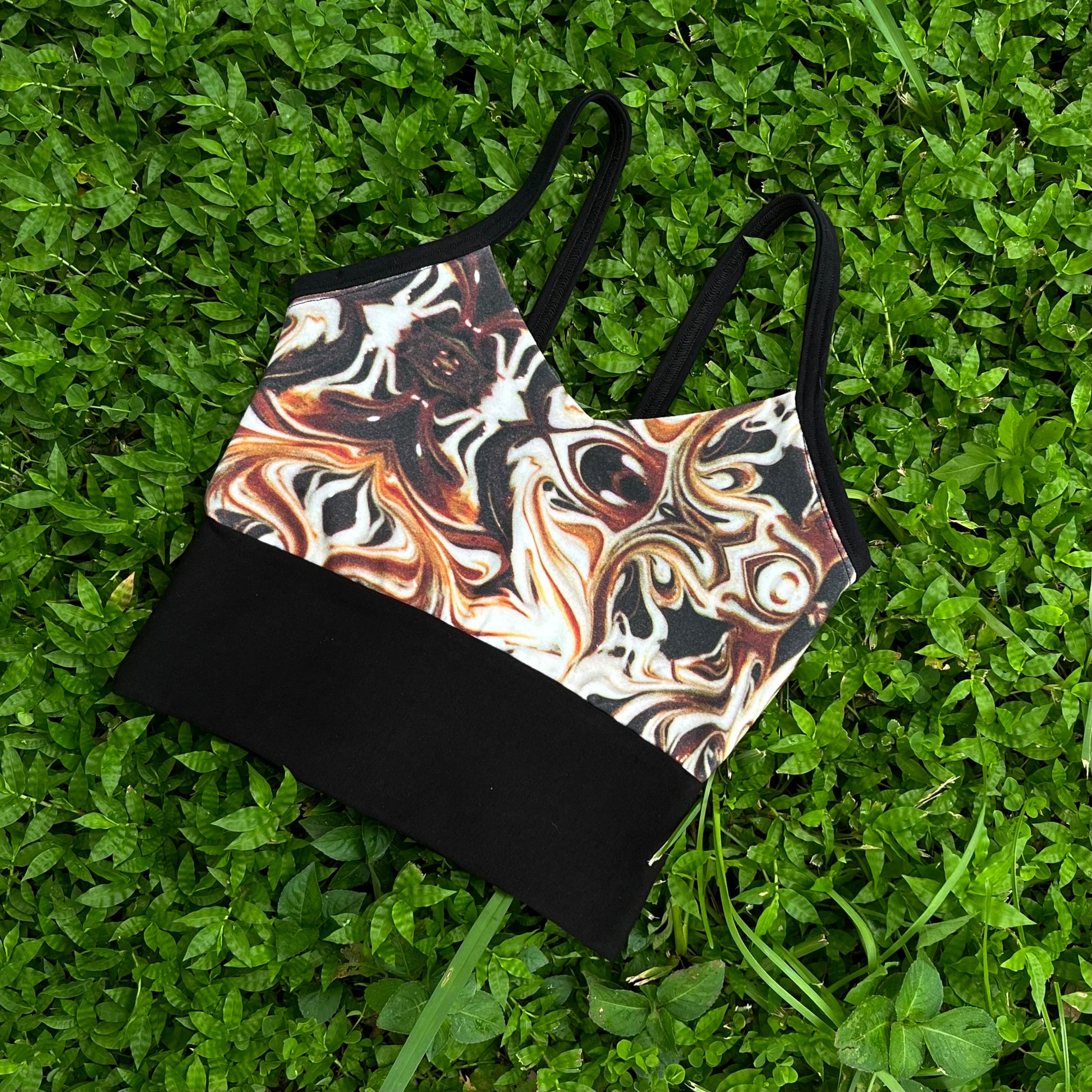 This bralette top doesn’t have pads, but is double lined and very supportive, and the long bottom band provides even more support <3