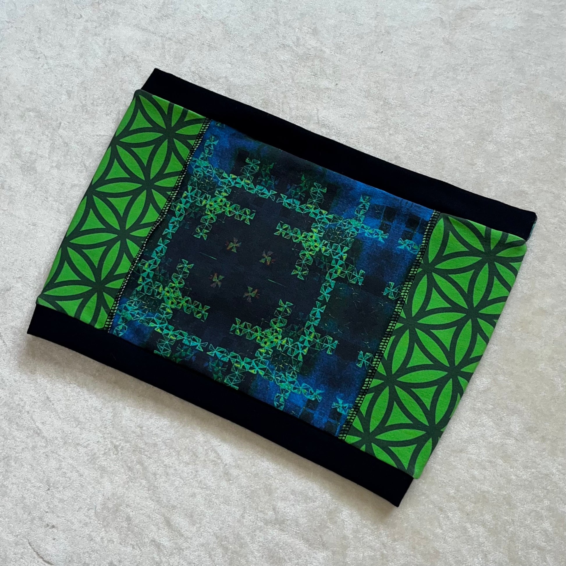 Mostly all patterned fabric is 93% Cotton 7% Spandex - It’s a 4 way stretch that’s very comfortable and allows for movement & breathability while also holding you in just right, contents of solid fabrics vary because I tend to switch them up, but I normally stick with natural fibers. 99% of everything I make is fire safe and can confidently be worn while flowing with fire props. Feel free to email me if you have questions about a specific one :)