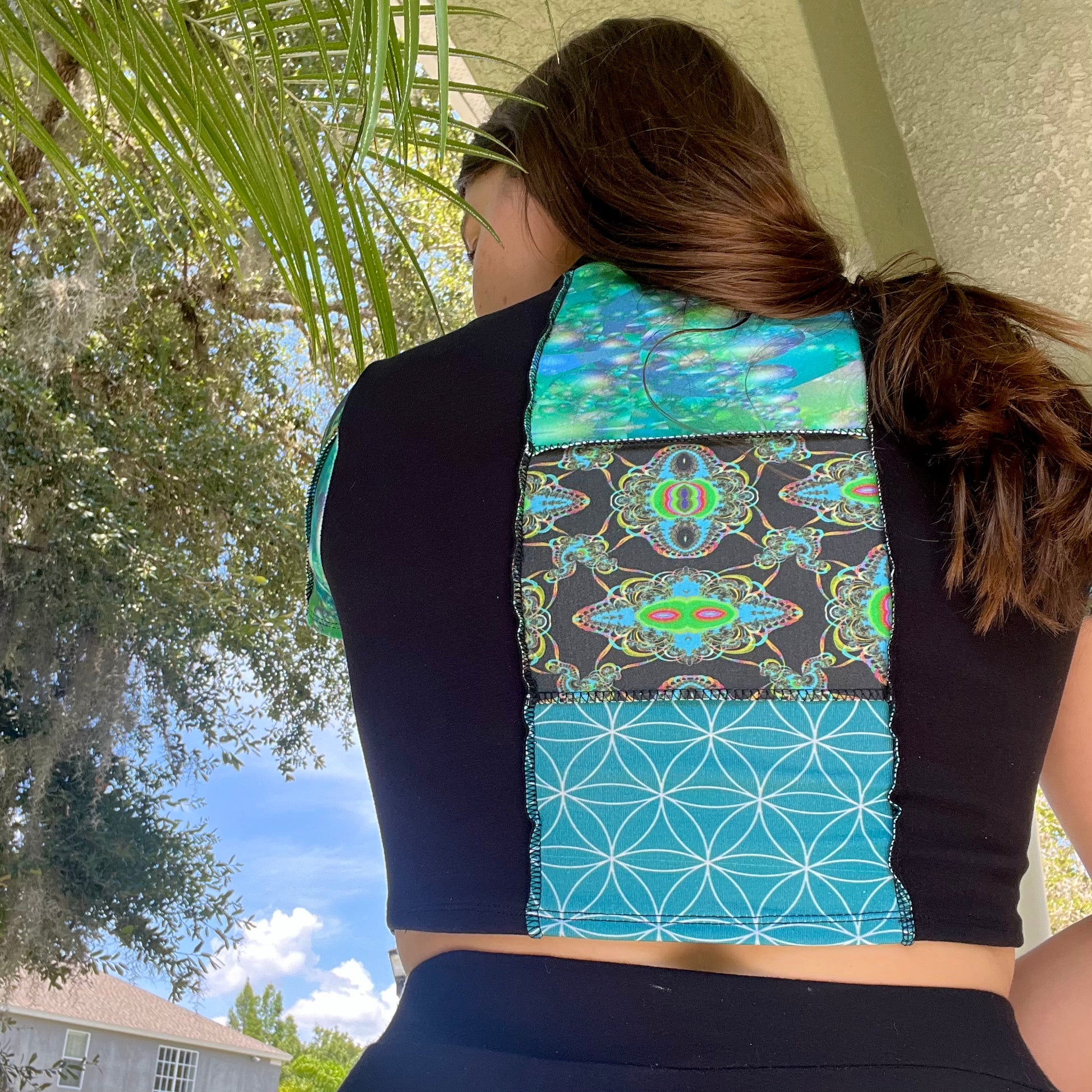 Mostly all patterned fabric is 93% Cotton 7% Spandex - It’s a 4 way stretch that’s very comfortable and allows for movement & breathability while also holding you in just right, contents of solid fabrics vary because I tend to switch them up, but I normally stick with natural fibers. 99% of everything I make is fire safe and can confidently be worn while flowing with fire props. Feel free to email me if you have questions about a specific one :)
