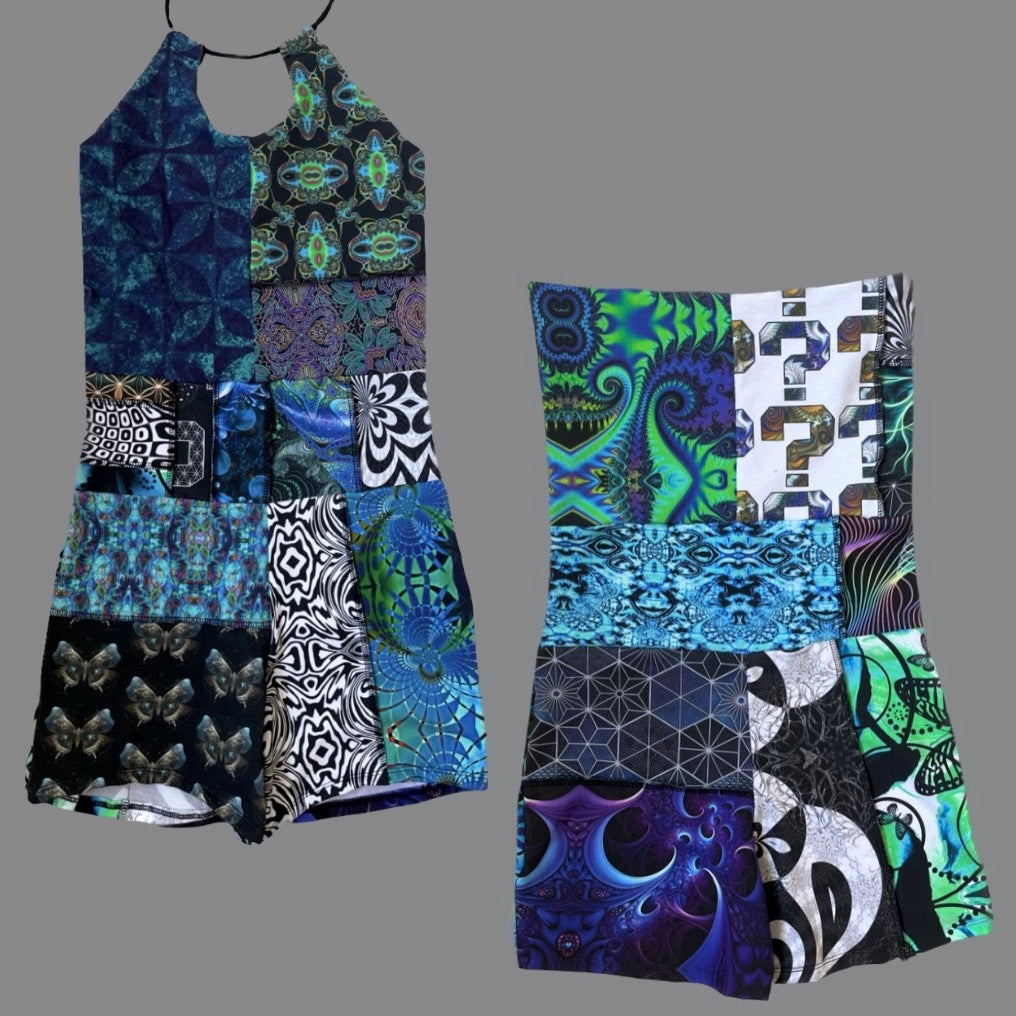 Patchwork Keyhole Romper (double layered top)☆ S/M