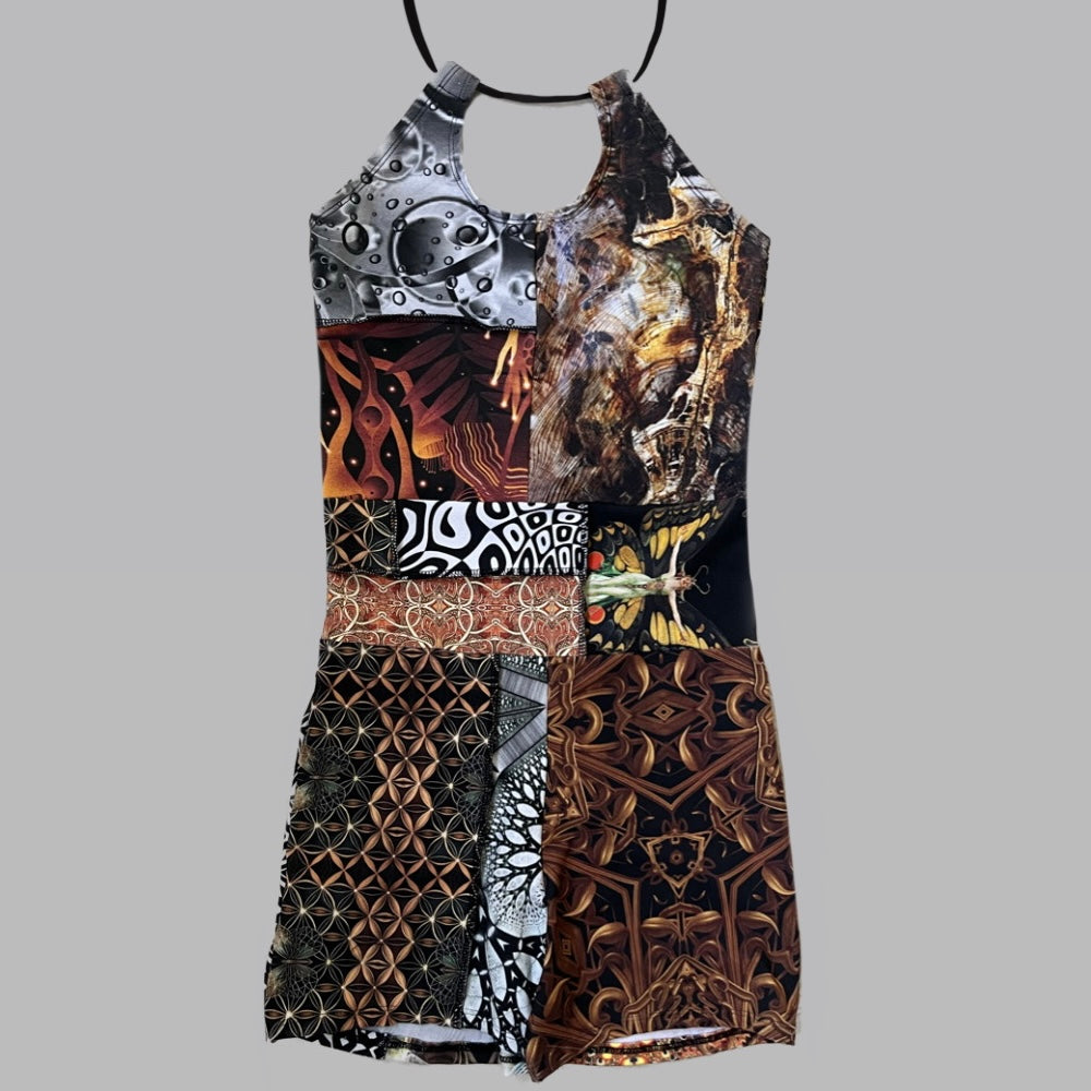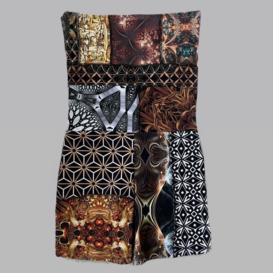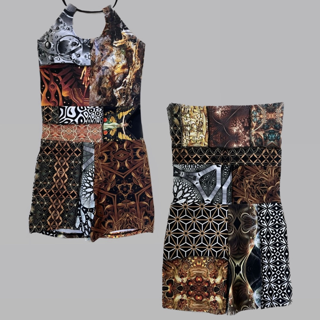 Mostly all patterned fabric is 93% Cotton 7% Spandex - It’s a 4 way stretch that’s very comfortable and allows for movement & breathability while also holding you in just right, contents of solid fabrics vary because I tend to switch them up, but I normally stick with natural fibers. 99% of everything I make is fire safe and can confidently be worn while flowing with fire props. Feel free to email me if you have questions about a specific one :)
