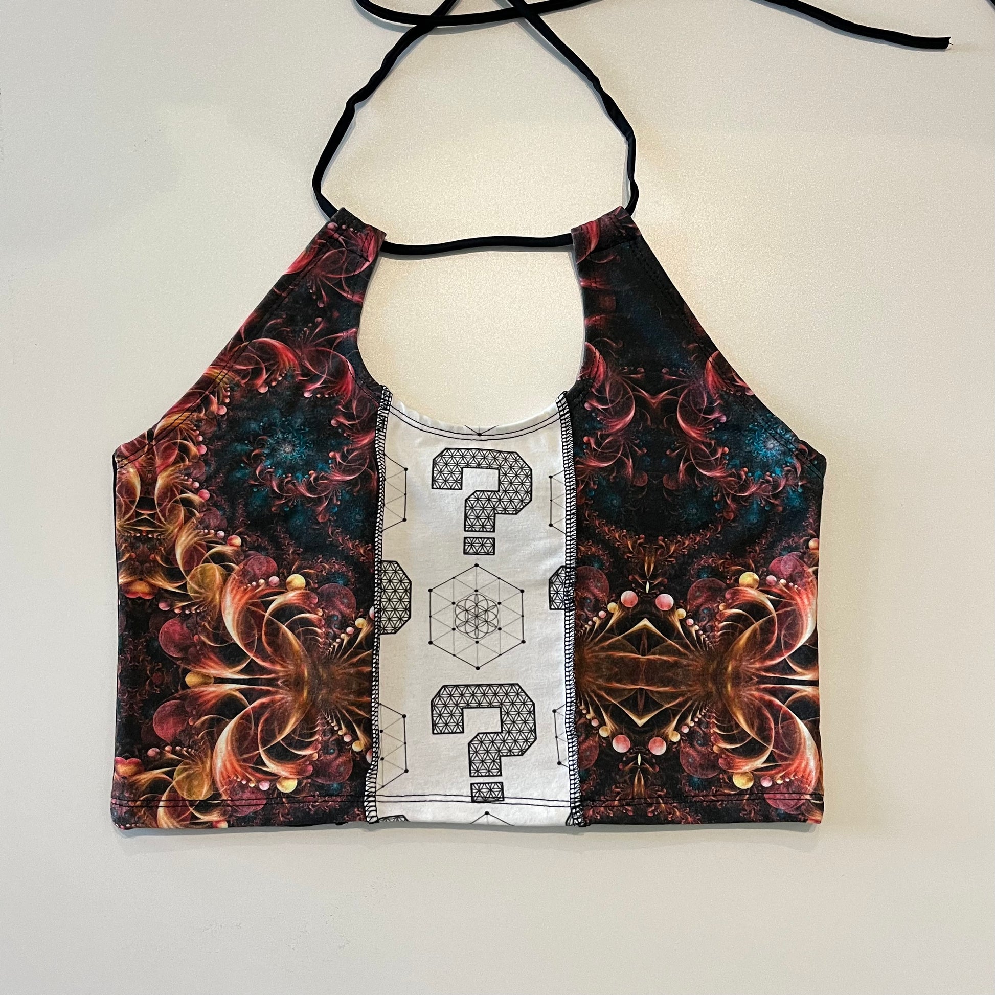 Mostly all patterned fabric is 93% Cotton 7% Spandex - It’s a 4 way stretch that’s very comfortable and allows for movement & breathability while also holding you in just right, contents of solid fabrics vary because I tend to switch them up, but I normally stick with natural fibers. 99% of everything I make is fire safe and can confidently be worn while flowing with fire props. Feel free to email me if you have questions about a specific one :)