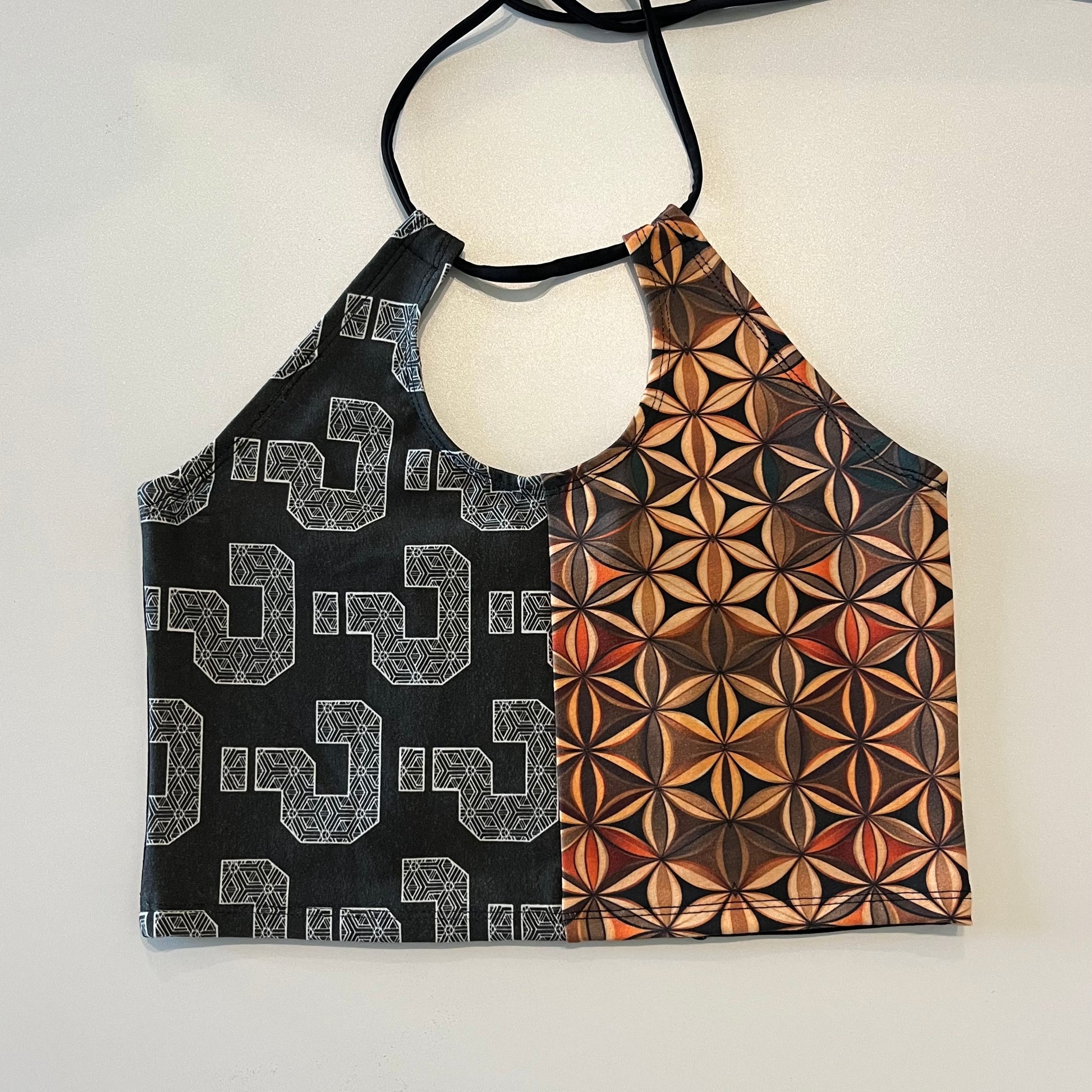 Mostly all patterned fabric is 93% Cotton 7% Spandex - It’s a 4 way stretch that’s very comfortable and allows for movement & breathability while also holding you in just right, contents of solid fabrics vary because I tend to switch them up, but I normally stick with natural fibers. 99% of everything I make is fire safe and can confidently be worn while flowing with fire props. Feel free to email me if you have questions about a specific one :)