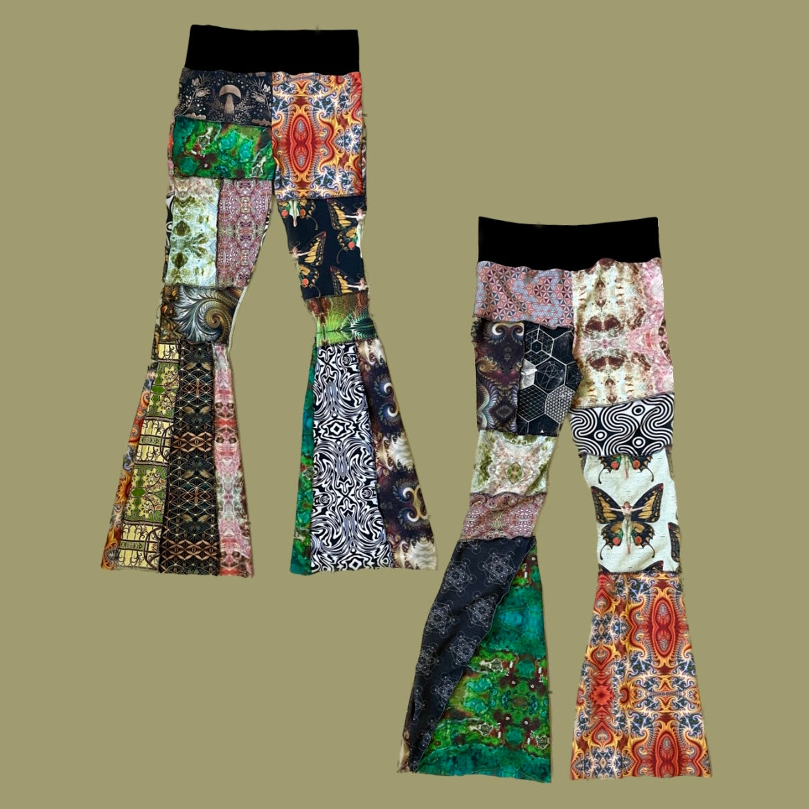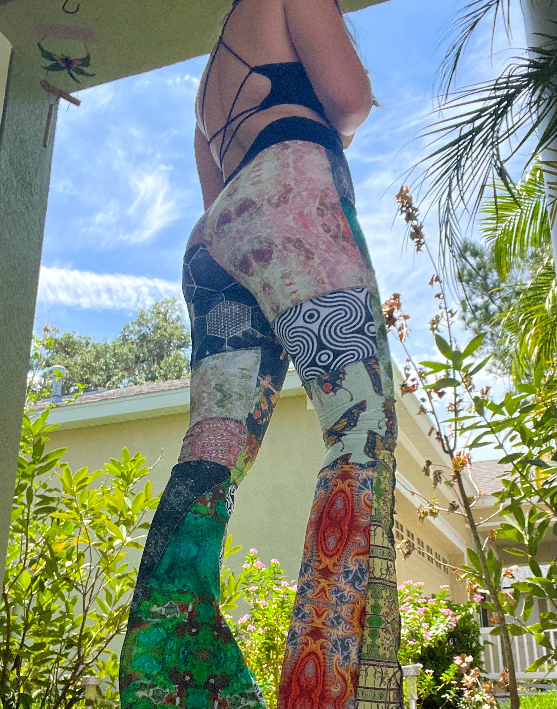 Mostly all patterned fabric is 93% Cotton 7% Spandex - It’s a 4 way stretch that’s very comfortable and allows for movement & breathability while also holding you in just right, contents of solid fabrics vary because I tend to switch them up, but I normally stick with natural fibers. 99% of everything I make is fire safe and can confidently be worn while flowing with fire props. Feel free to email me if you have questions about a specific one :)