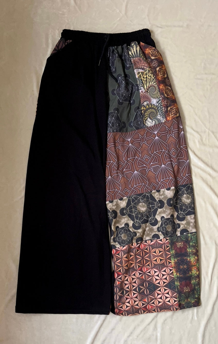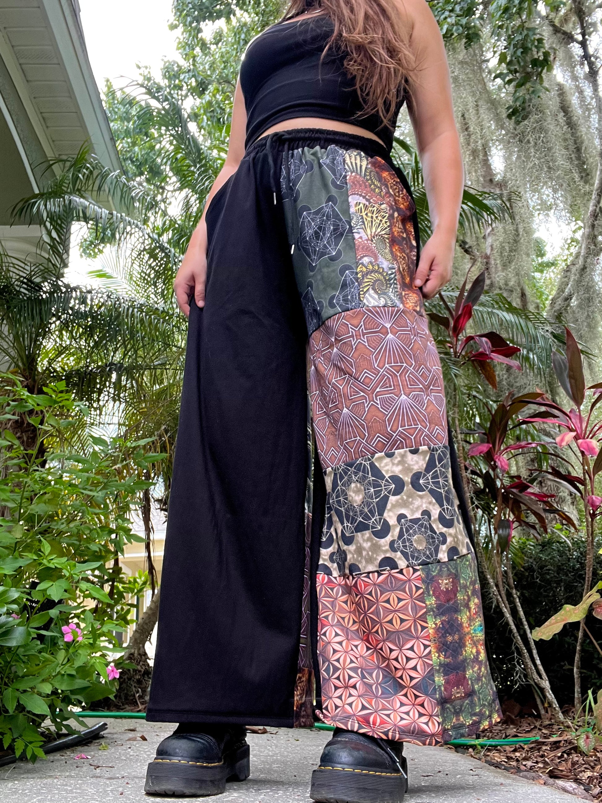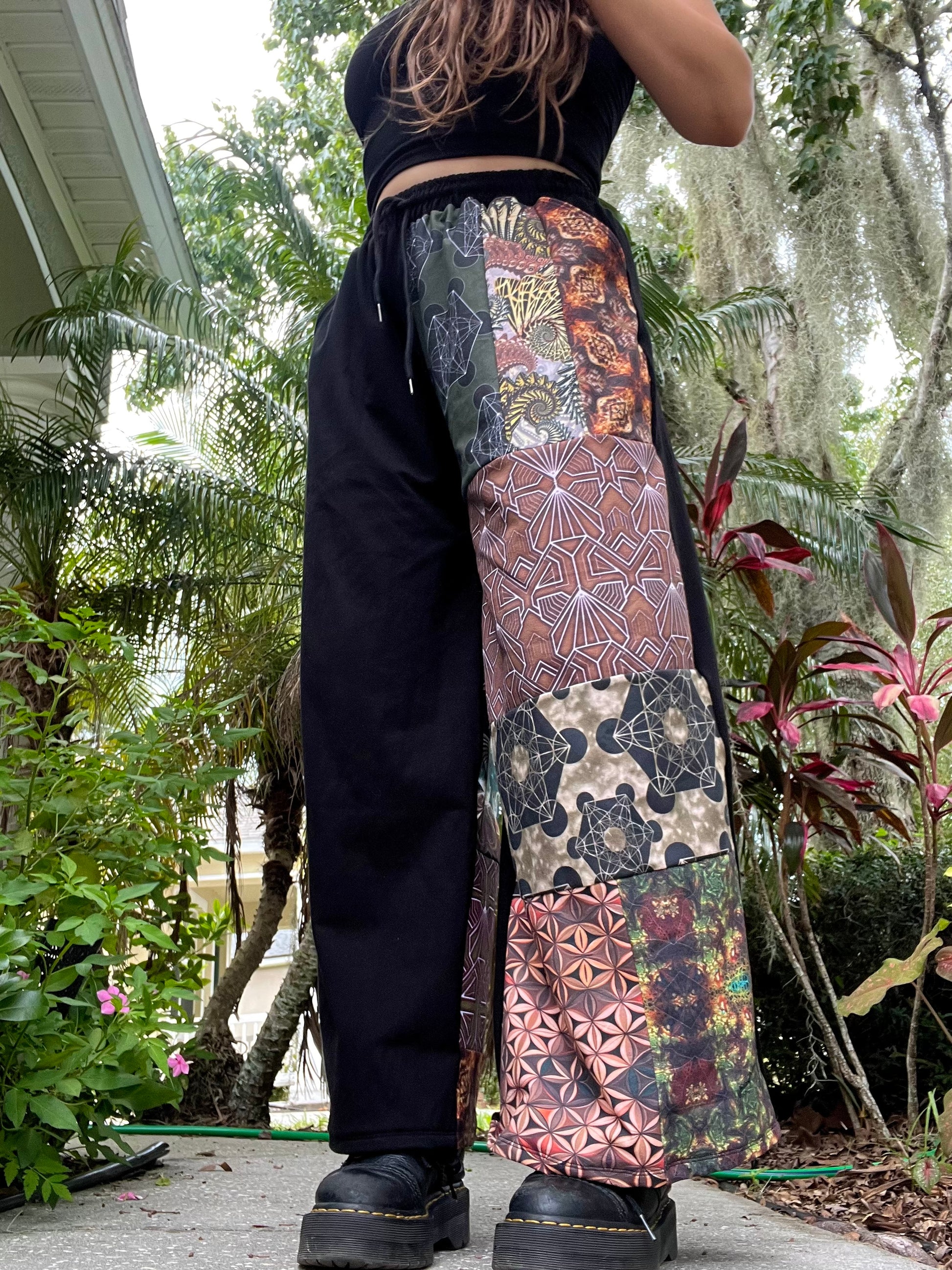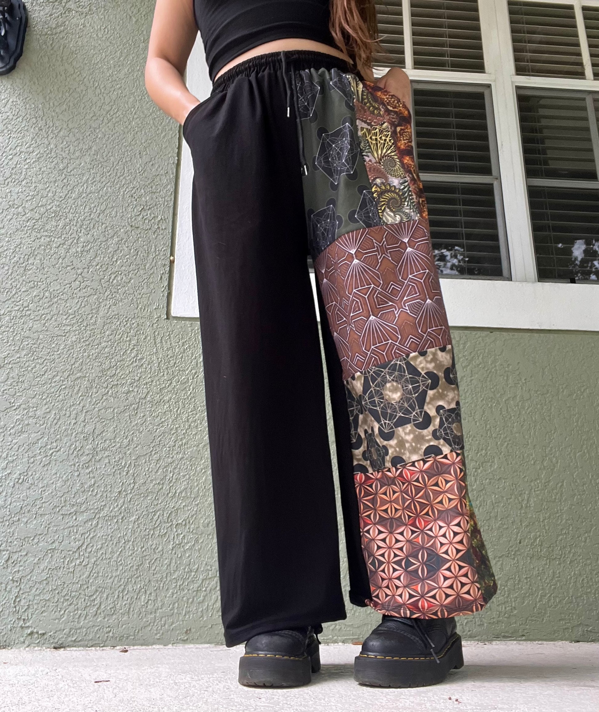 Mostly all patterned fabric is 93% Cotton 7% Spandex - It’s a 4 way stretch that’s very comfortable and allows for movement & breathability while also holding you in just right, contents of solid fabrics vary because I tend to switch them up, but I normally stick with natural fibers. 99% of everything I make is fire safe and can confidently be worn while flowing with fire props. Feel free to email me if you have questions about a specific one :)