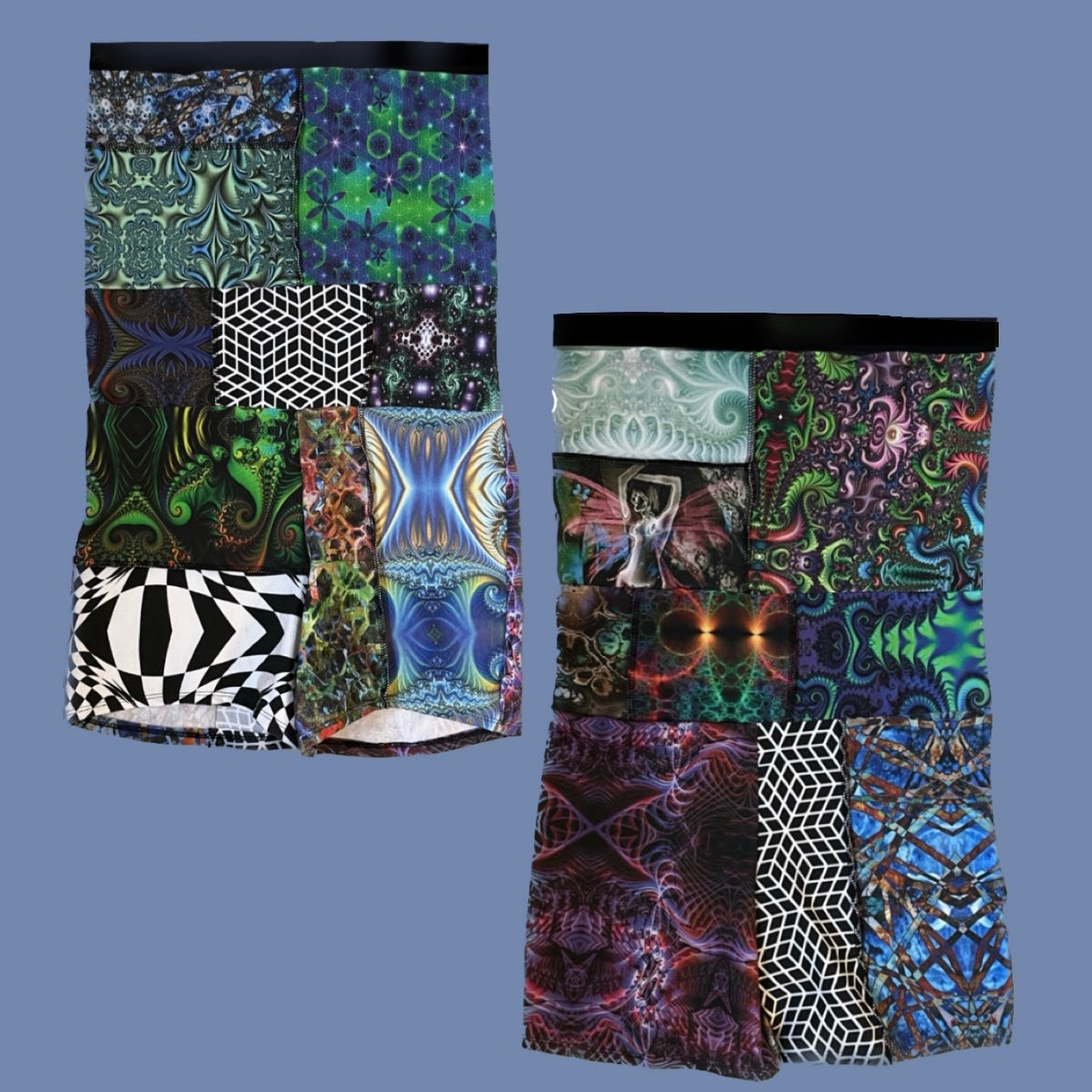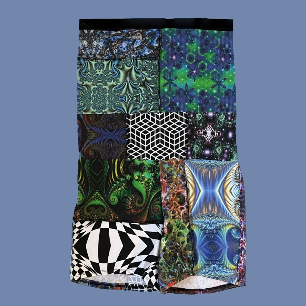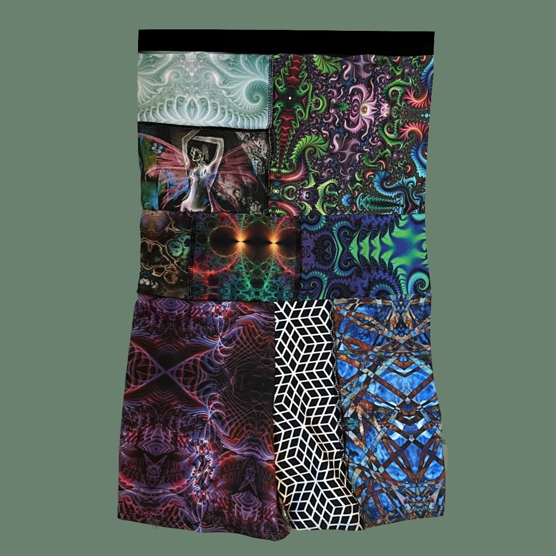 Mostly all patterned fabric is 93% Cotton 7% Spandex - It’s a 4 way stretch that’s very comfortable and allows for movement & breathability while also holding you in just right, contents of solid fabrics vary because I tend to switch them up, but I normally stick with natural fibers. 99% of everything I make is fire safe and can confidently be worn while flowing with fire props. Feel free to email me if you have questions about a specific one :)