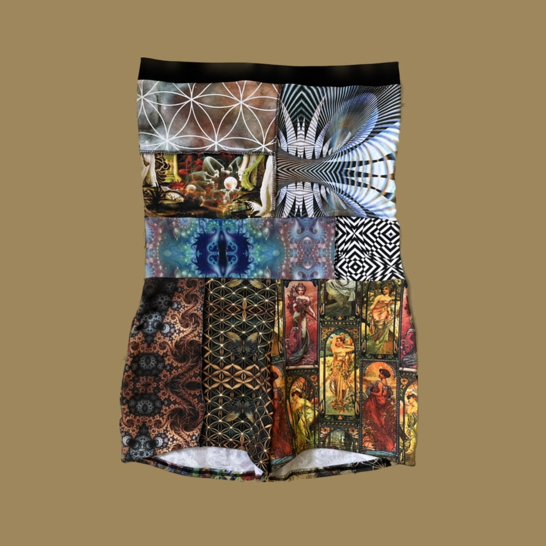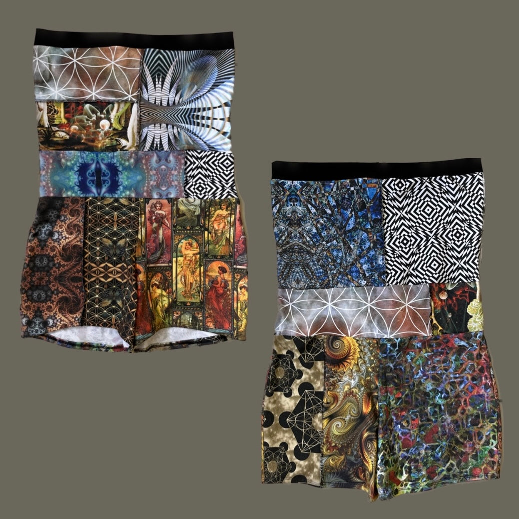 Mostly all patterned fabric is 93% Cotton 7% Spandex - It’s a 4 way stretch that’s very comfortable and allows for movement & breathability while also holding you in just right, contents of solid fabrics vary because I tend to switch them up, but I normally stick with natural fibers. 99% of everything I make is fire safe and can confidently be worn while flowing with fire props. Feel free to email me if you have questions about a specific one :)