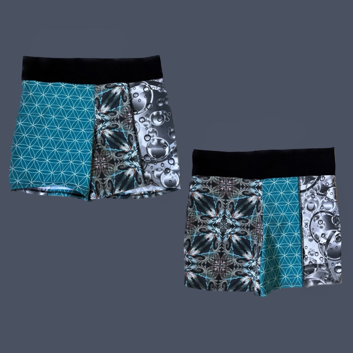 Mostly all patterned fabric is 93% Cotton 7% Spandex - It’s a 4 way stretch that’s very comfortable and allows for movement & breathability while also holding you in just right, contents of solid fabrics vary because I tend to switch them up, but I normally stick with natural fibers. 99% of everything I make is fire safe and can confidently be worn while flowing with fire props. Feel free to email me if you have questions about a specific one :)