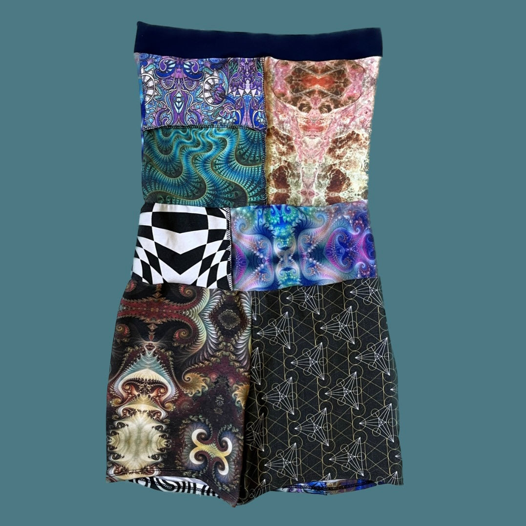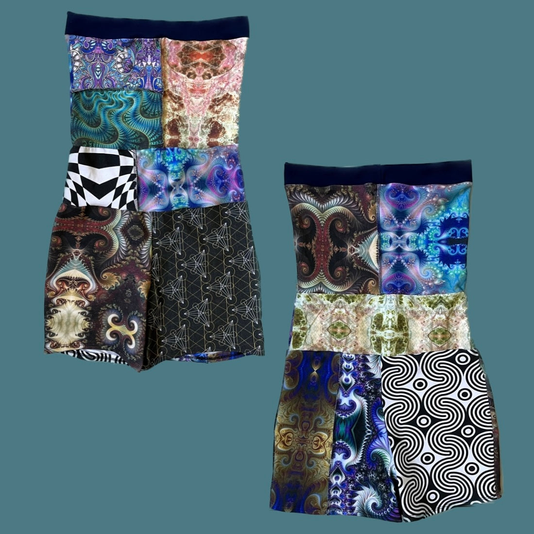 Mostly all patterned fabric is 93% Cotton 7% Spandex - It’s a 4 way stretch that’s very comfortable and allows for movement & breathability while also holding you in just right, contents of solid fabrics vary because I tend to switch them up, but I normally stick with natural fibers. 99% of everything I make is fire safe and can confidently be worn while flowing with fire props. Feel free to email me if you have questions about a specific one :)