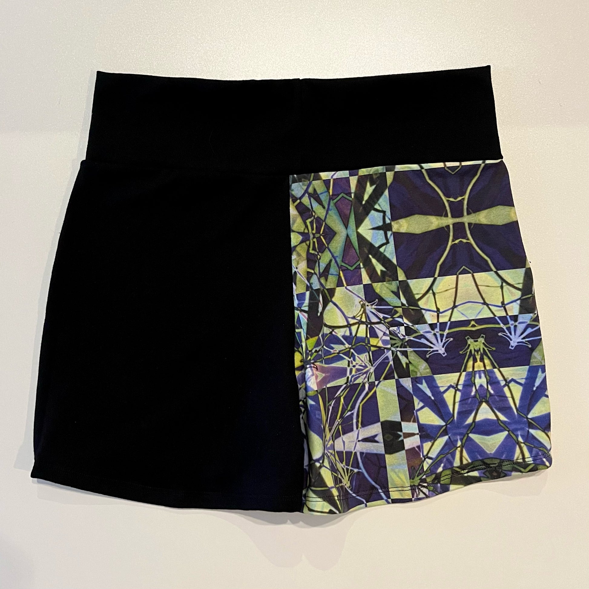 Mostly all patterned fabric is 93% Cotton 7% Spandex - It’s a 4 way stretch that’s very comfortable and allows for movement & breathability while also holding you in just right, contents of solid fabrics vary because I tend to switch them up, but I normally stick with natural fibers. 99% of everything I make is fire safe and can confidently be worn while flowing with fire props. Feel free to email me if you have questions about a specific one :)