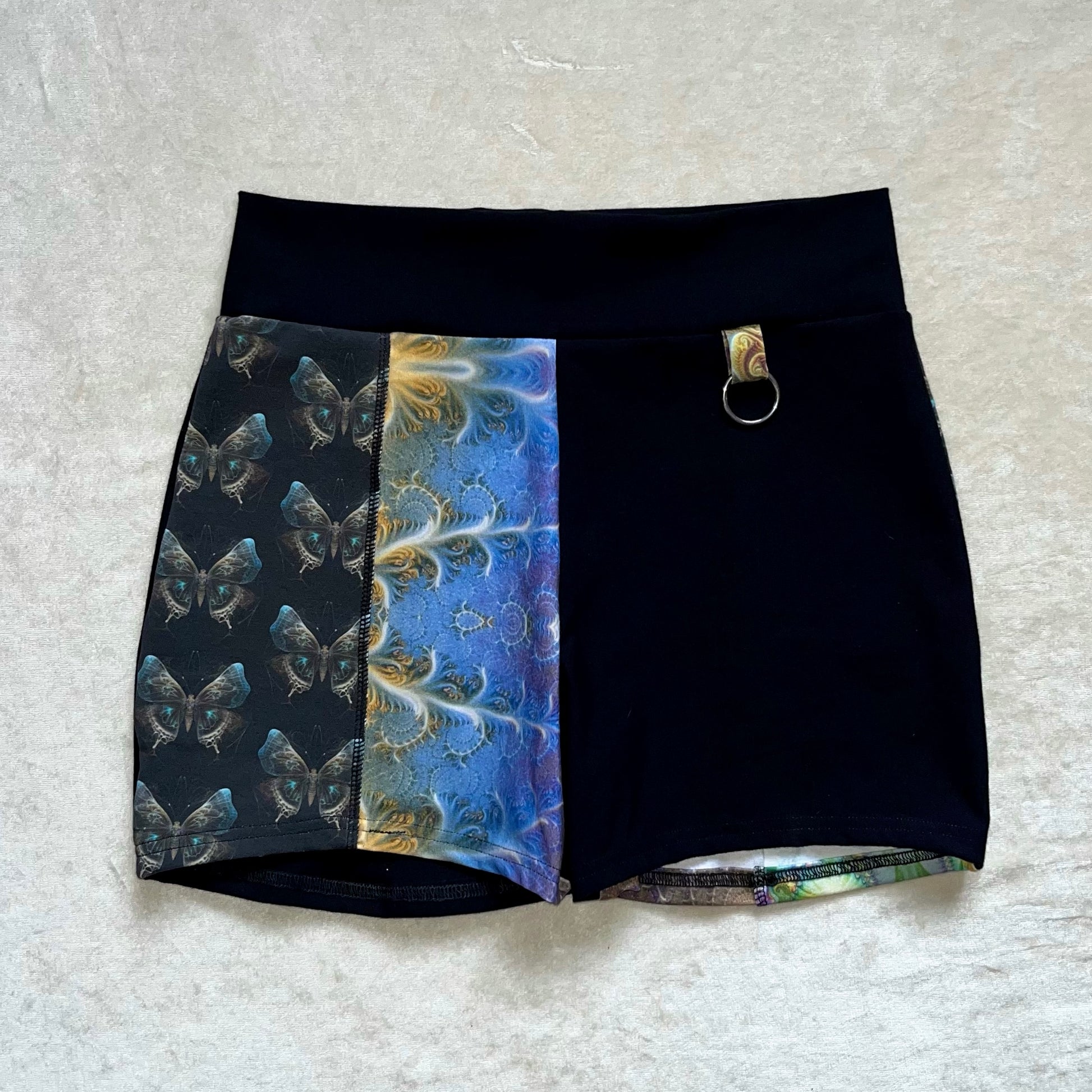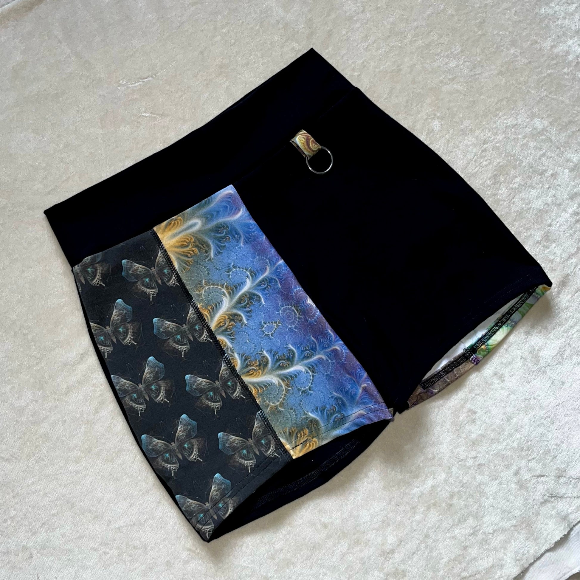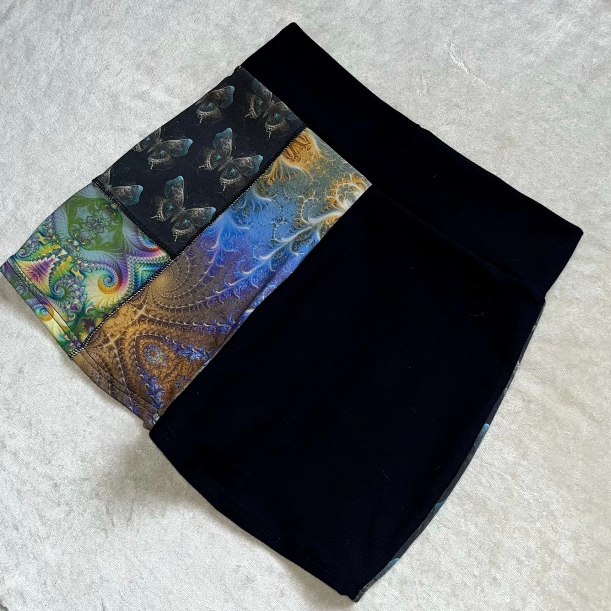 Mostly all patterned fabric is 93% Cotton 7% Spandex - It’s a 4 way stretch that’s very comfortable and allows for movement & breathability while also holding you in just right, contents of solid fabrics vary because I tend to switch them up, but I normally stick with natural fibers. 99% of everything I make is fire safe and can confidently be worn while flowing with fire props. Feel free to email me if you have questions about a specific one :)