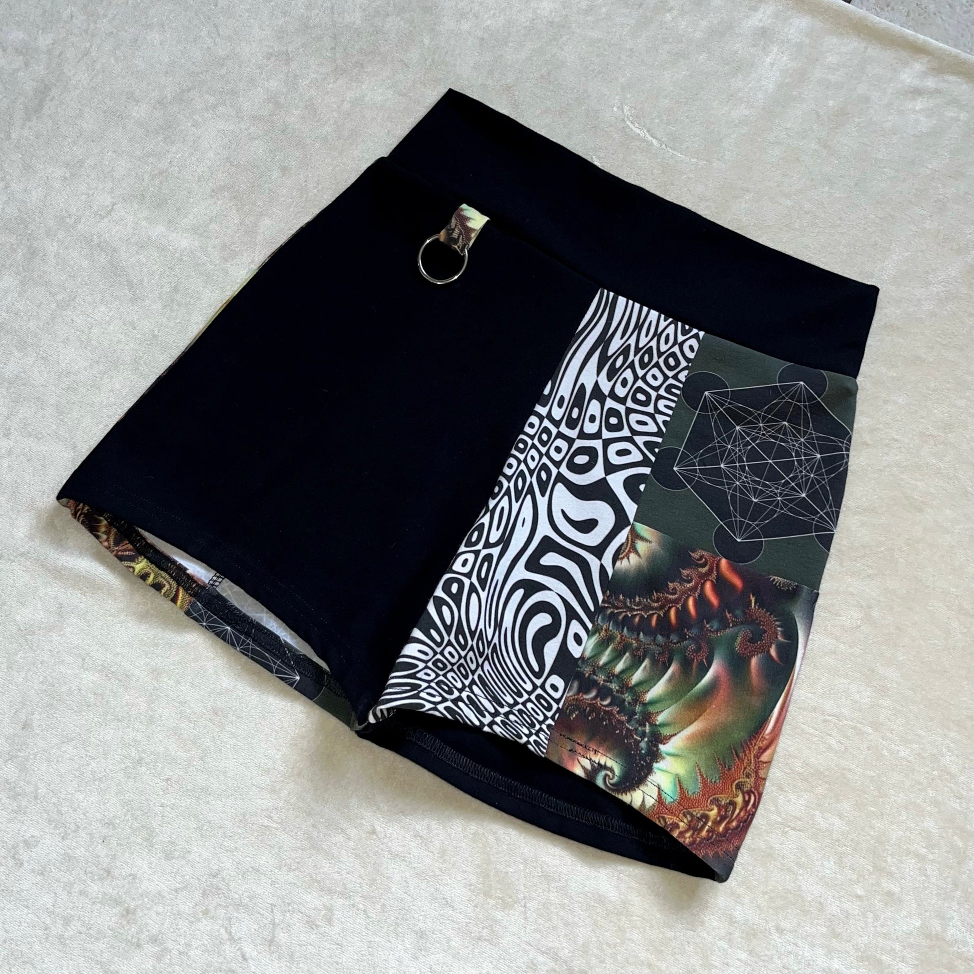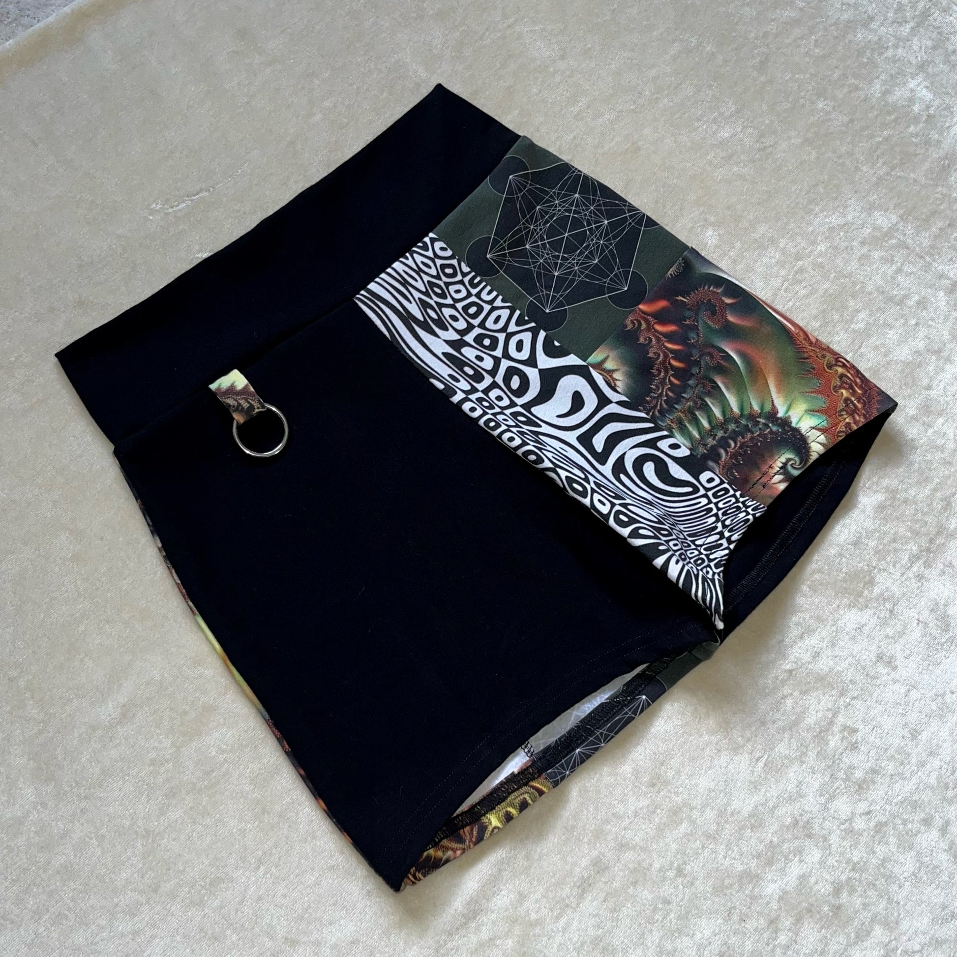 Mostly all patterned fabric is 93% Cotton 7% Spandex - It’s a 4 way stretch that’s very comfortable and allows for movement & breathability while also holding you in just right, contents of solid fabrics vary because I tend to switch them up, but I normally stick with natural fibers. 99% of everything I make is fire safe and can confidently be worn while flowing with fire props. Feel free to email me if you have questions about a specific one :)