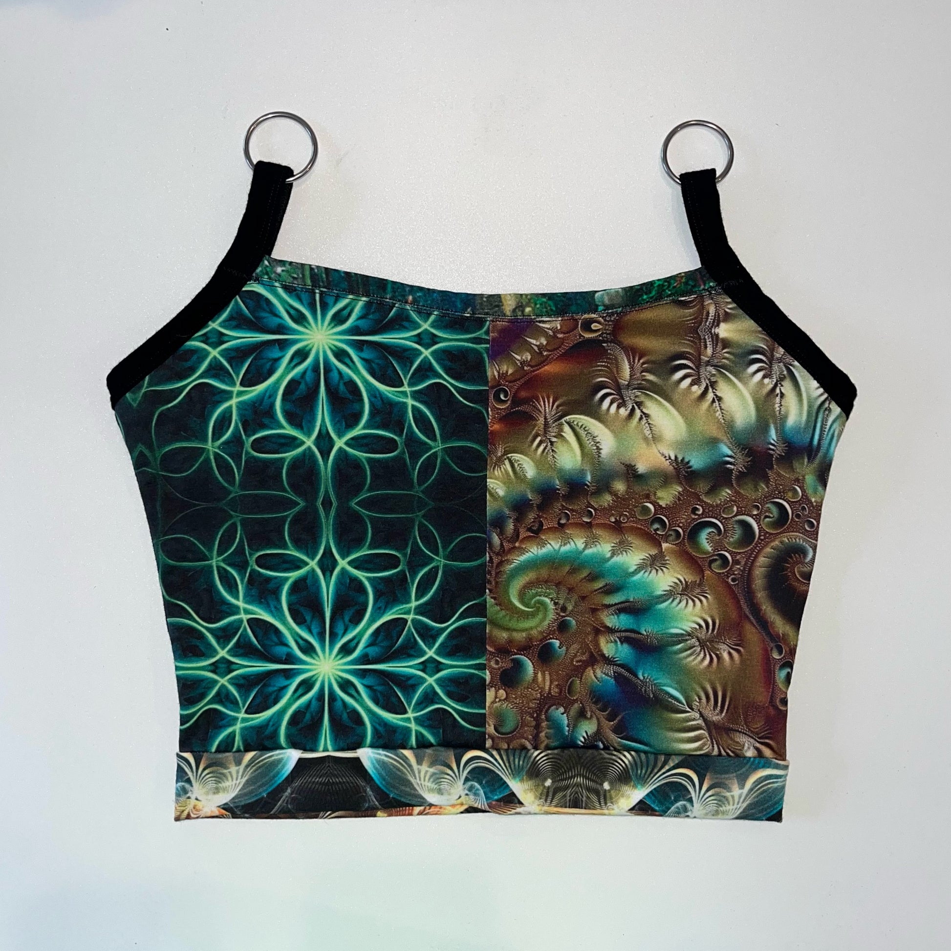 Mostly all patterned fabric is 93% Cotton 7% Spandex - It’s a 4 way stretch that’s very comfortable and allows for movement & breathability while also holding you in just right, contents of solid fabrics vary because I tend to switch them up, but I normally stick with natural fibers. 99% of everything I make is fire safe and can confidently be worn while flowing with fire props. Feel free to email me if you have questions about a specific one :)
