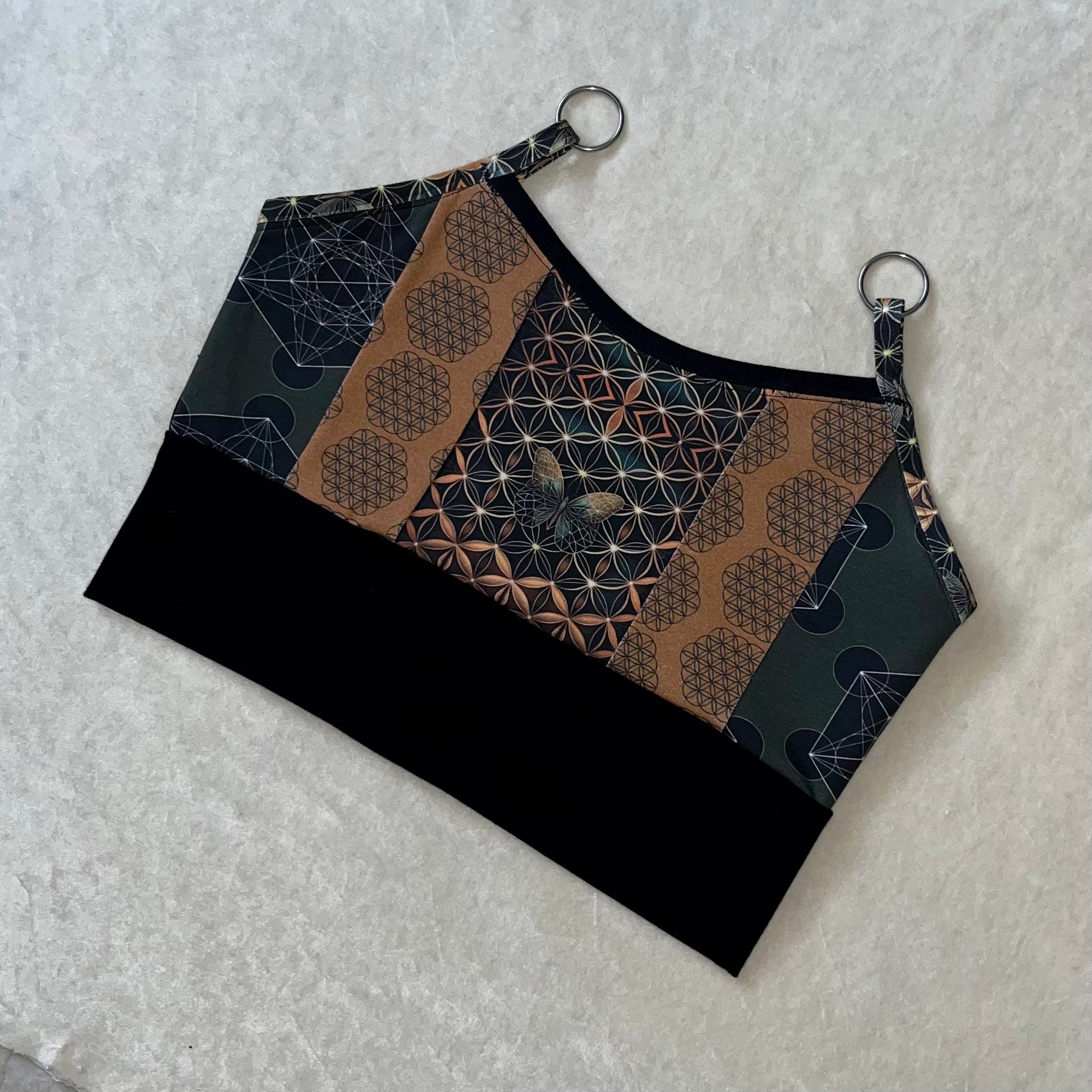 Mostly all patterned fabric is 93% Cotton 7% Spandex - It’s a 4 way stretch that’s very comfortable and allows for movement & breathability while also holding you in just right, contents of solid fabrics vary because I tend to switch them up, but I normally stick with natural fibers. 99% of everything I make is fire safe and can confidently be worn while flowing with fire props. Feel free to email me if you have questions about a specific one :)