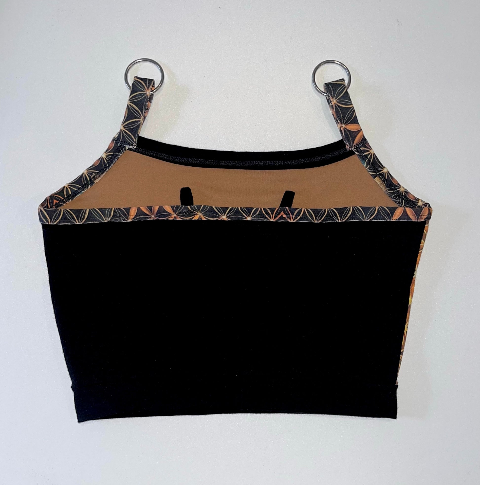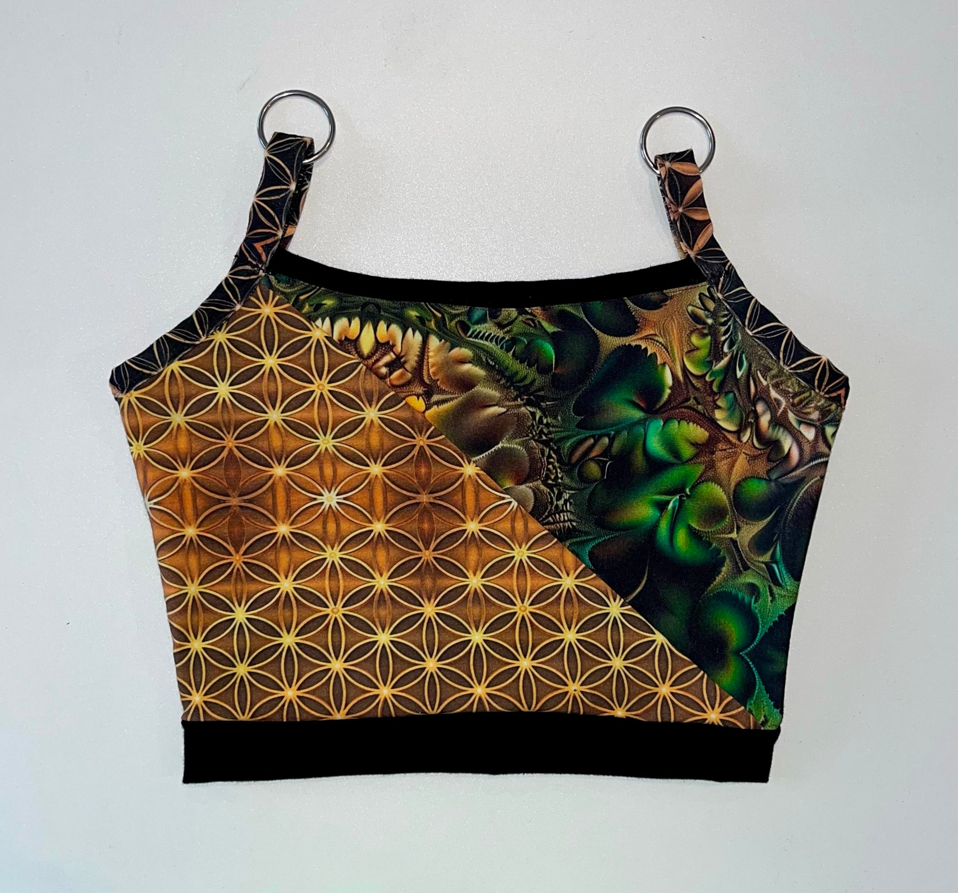 Mostly all patterned fabric is 93% Cotton 7% Spandex - It’s a 4 way stretch that’s very comfortable and allows for movement & breathability while also holding you in just right, contents of solid fabrics vary because I tend to switch them up, but I normally stick with natural fibers. 99% of everything I make is fire safe and can confidently be worn while flowing with fire props. Feel free to email me if you have questions about a specific one :)