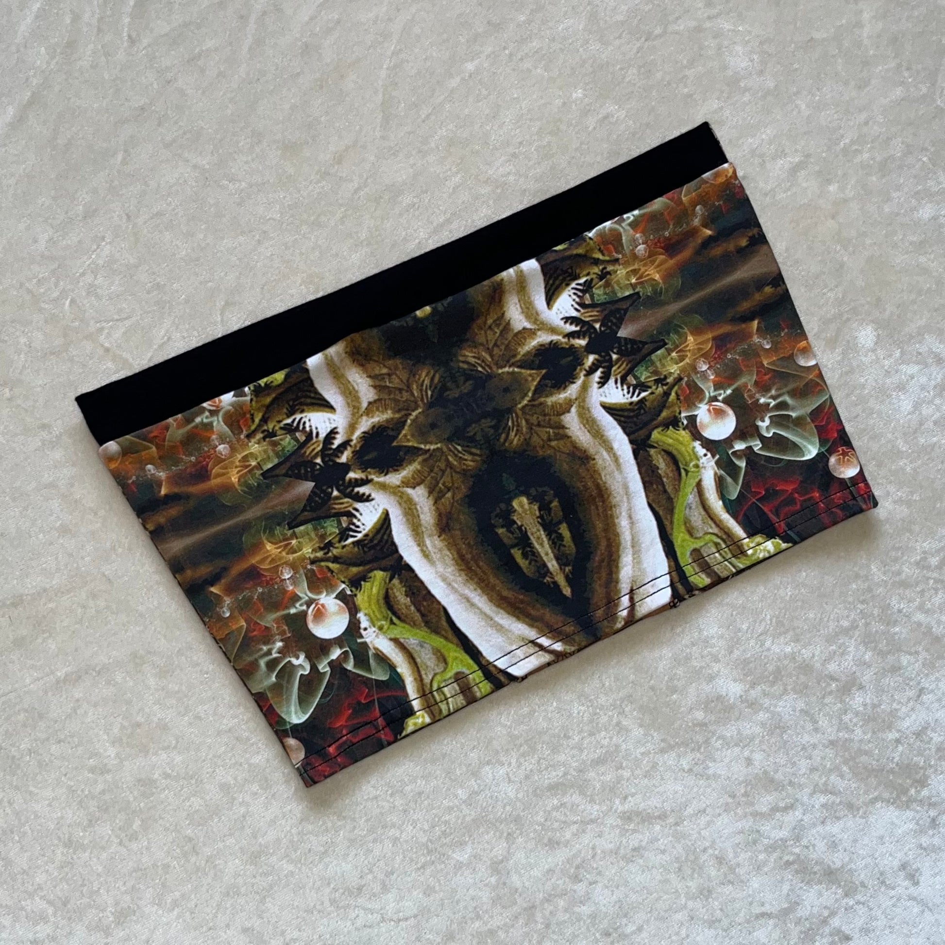 Mostly all patterned fabric is 93% Cotton 7% Spandex - It’s a 4 way stretch that’s very comfortable and allows for movement & breathability while also holding you in just right, contents of solid fabrics vary because I tend to switch them up, but I normally stick with natural fibers. 99% of everything I make is fire safe and can confidently be worn while flowing with fire props. Feel free to email me if you have questions about a specific one :)