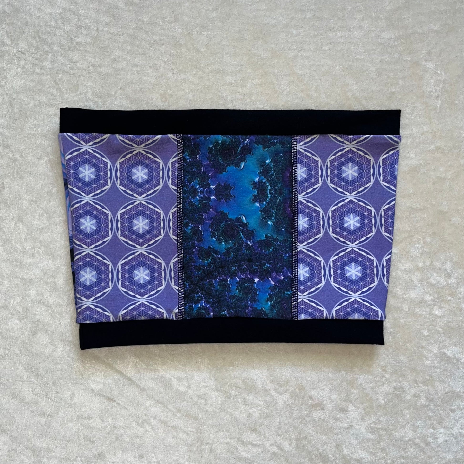 Mostly all patterned fabric is 93% Cotton 7% Spandex - It’s a 4 way stretch that’s very comfortable and allows for movement & breathability while also holding you in just right, contents of solid fabrics vary because I tend to switch them up, but I normally stick with natural fibers. 99% of everything I make is fire safe and can confidently be worn while flowing with fire props. Feel free to email me if you have questions about a specific one :)