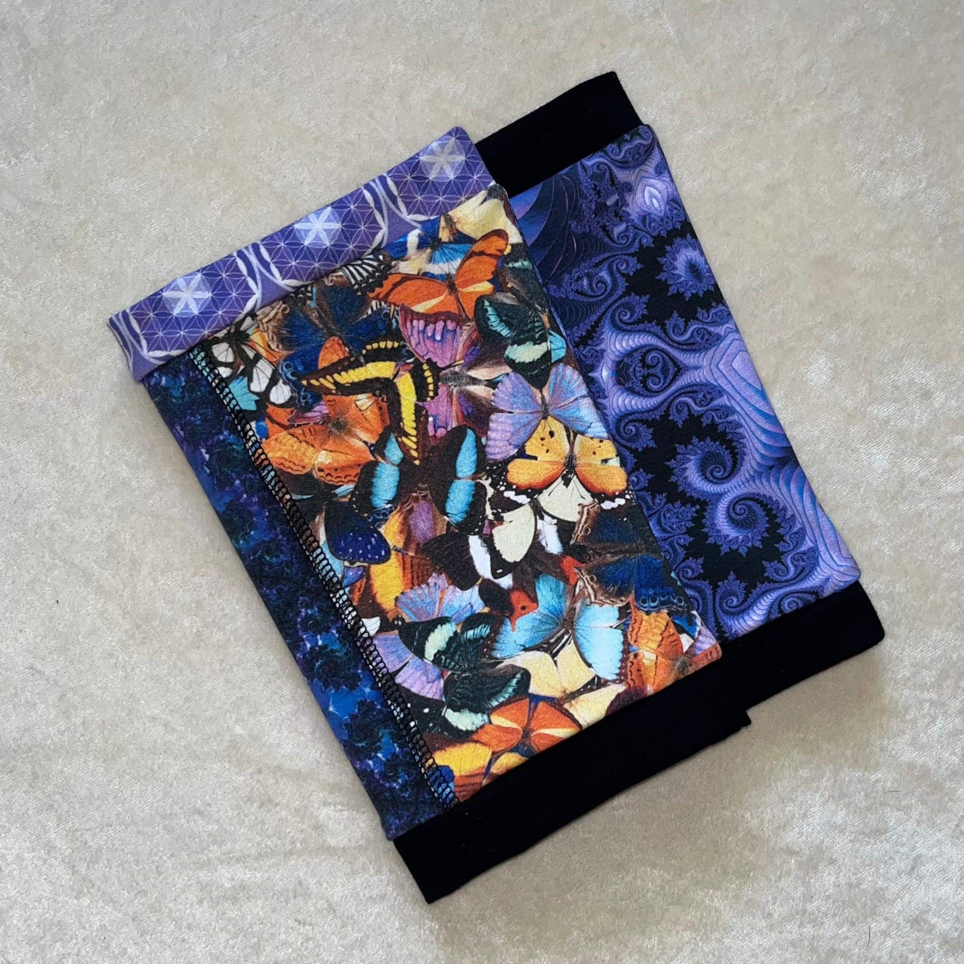 I love the way these came out the threads really pop with the color and contrast of the black. I love that you went with purple and blue tones! These fit perfectly! Keep on creating!