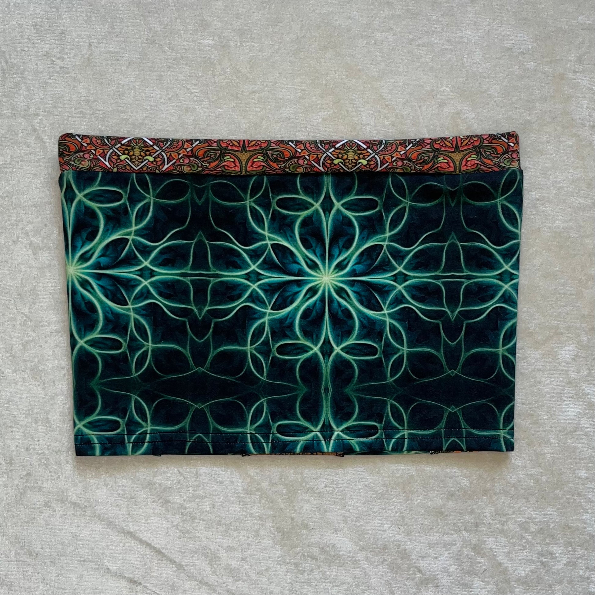 Mostly all patterned fabric is 93% Cotton 7% Spandex - It’s a 4 way stretch that’s very comfortable and allows for movement & breathability while also holding you in just right, contents of solid fabrics vary because I tend to switch them up, but I normally stick with natural fibers. 99% of everything I make is fire safe and can confidently be worn while flowing with fire props. Feel free to email me if you have questions about a specific one :)