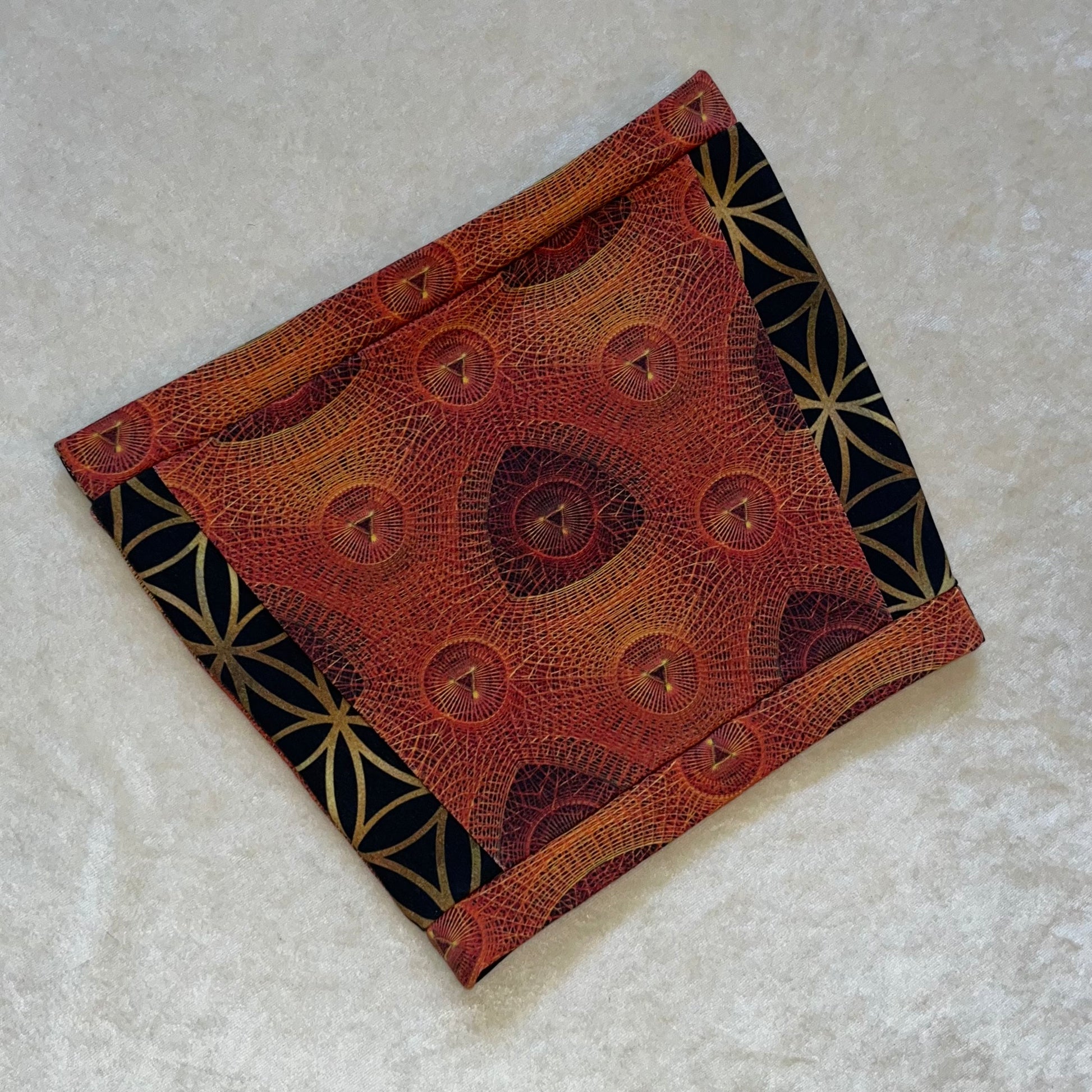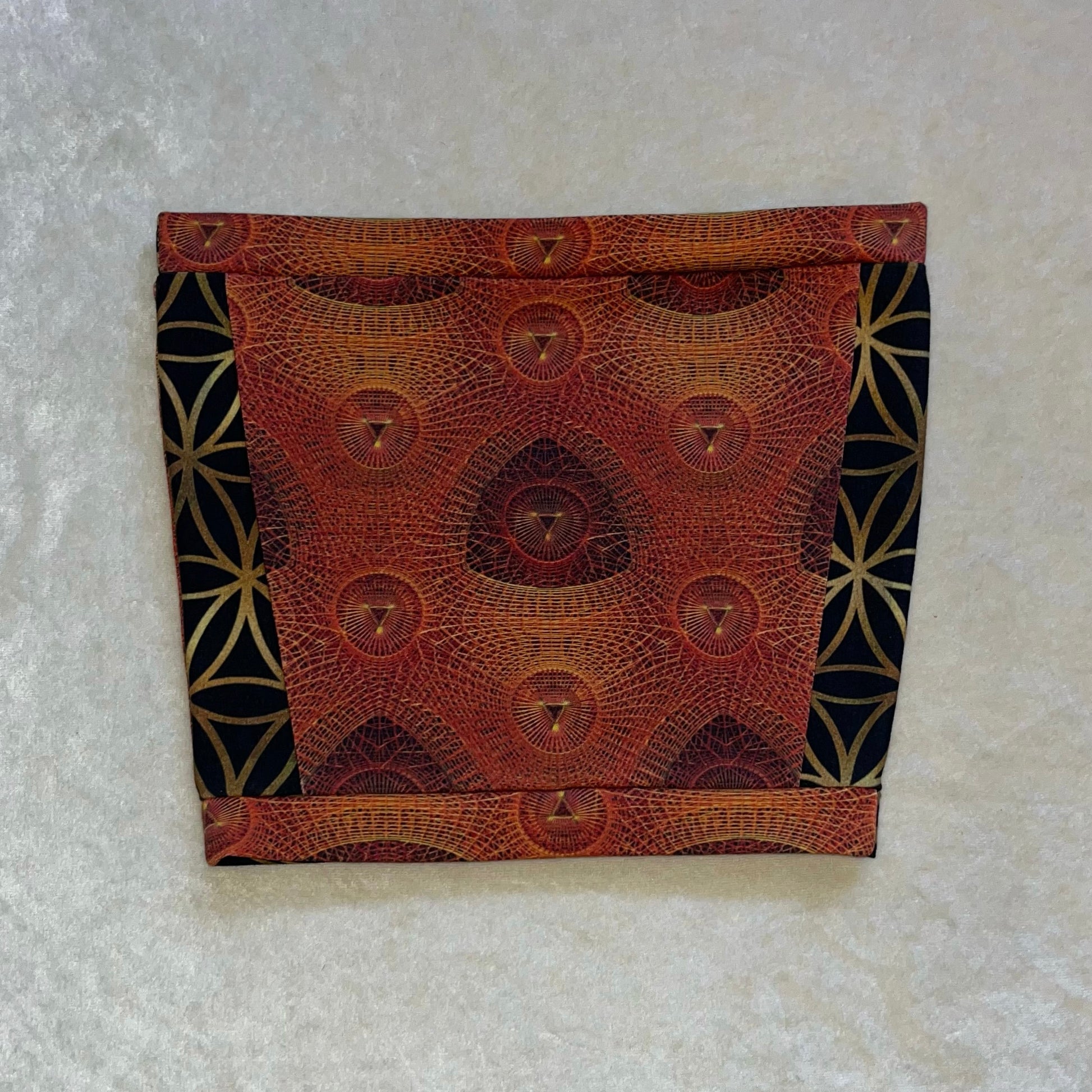 Mostly all patterned fabric is 93% Cotton 7% Spandex - It’s a 4 way stretch that’s very comfortable and allows for movement & breathability while also holding you in just right, contents of solid fabrics vary because I tend to switch them up, but I normally stick with natural fibers. 99% of everything I make is fire safe and can confidently be worn while flowing with fire props. Feel free to email me if you have questions about a specific one :)