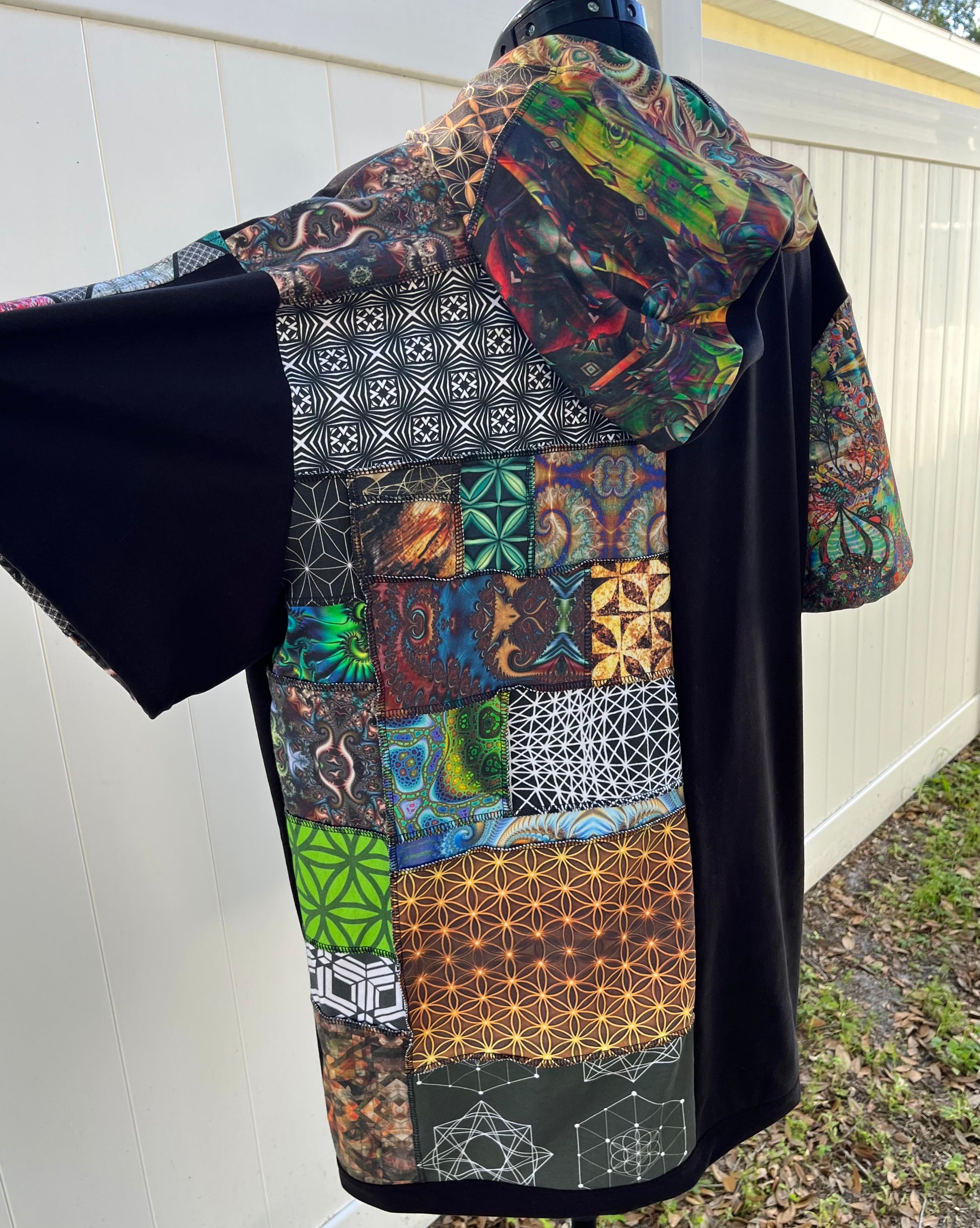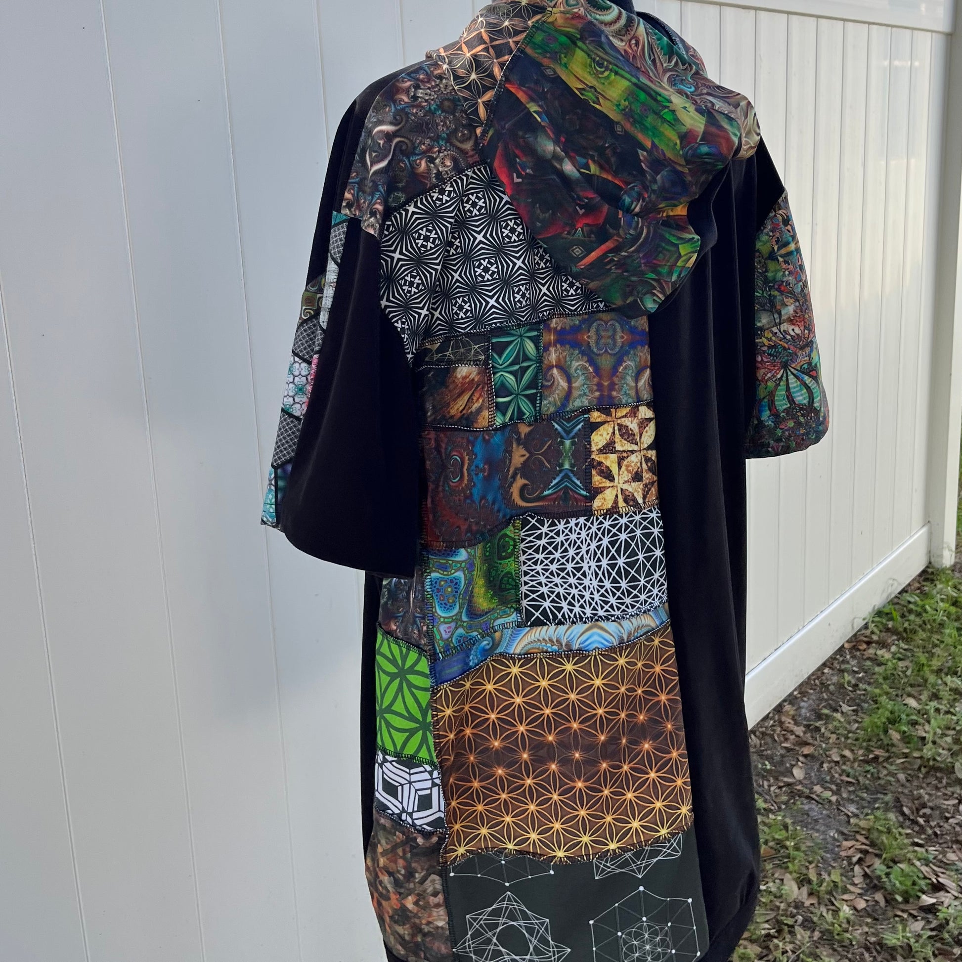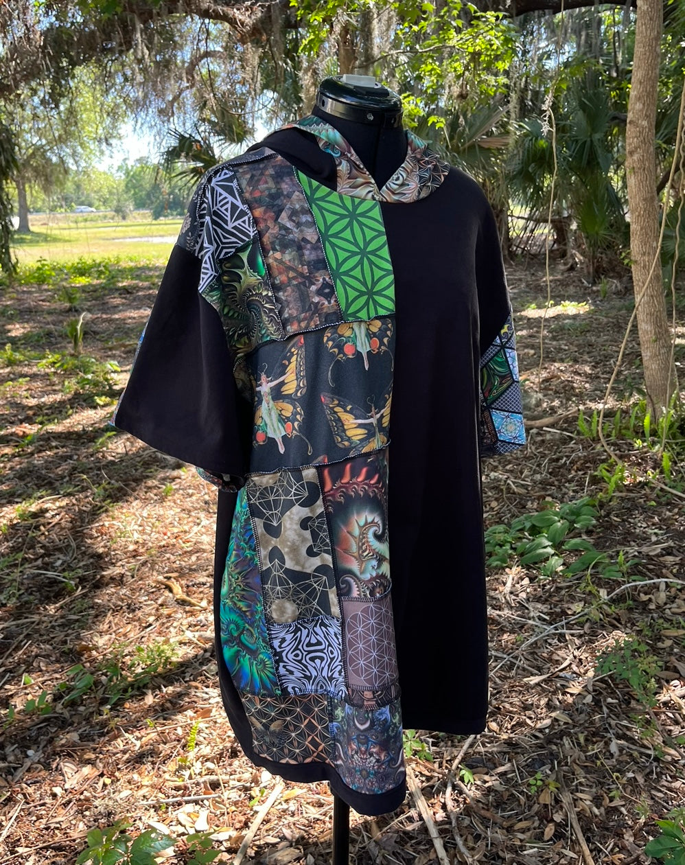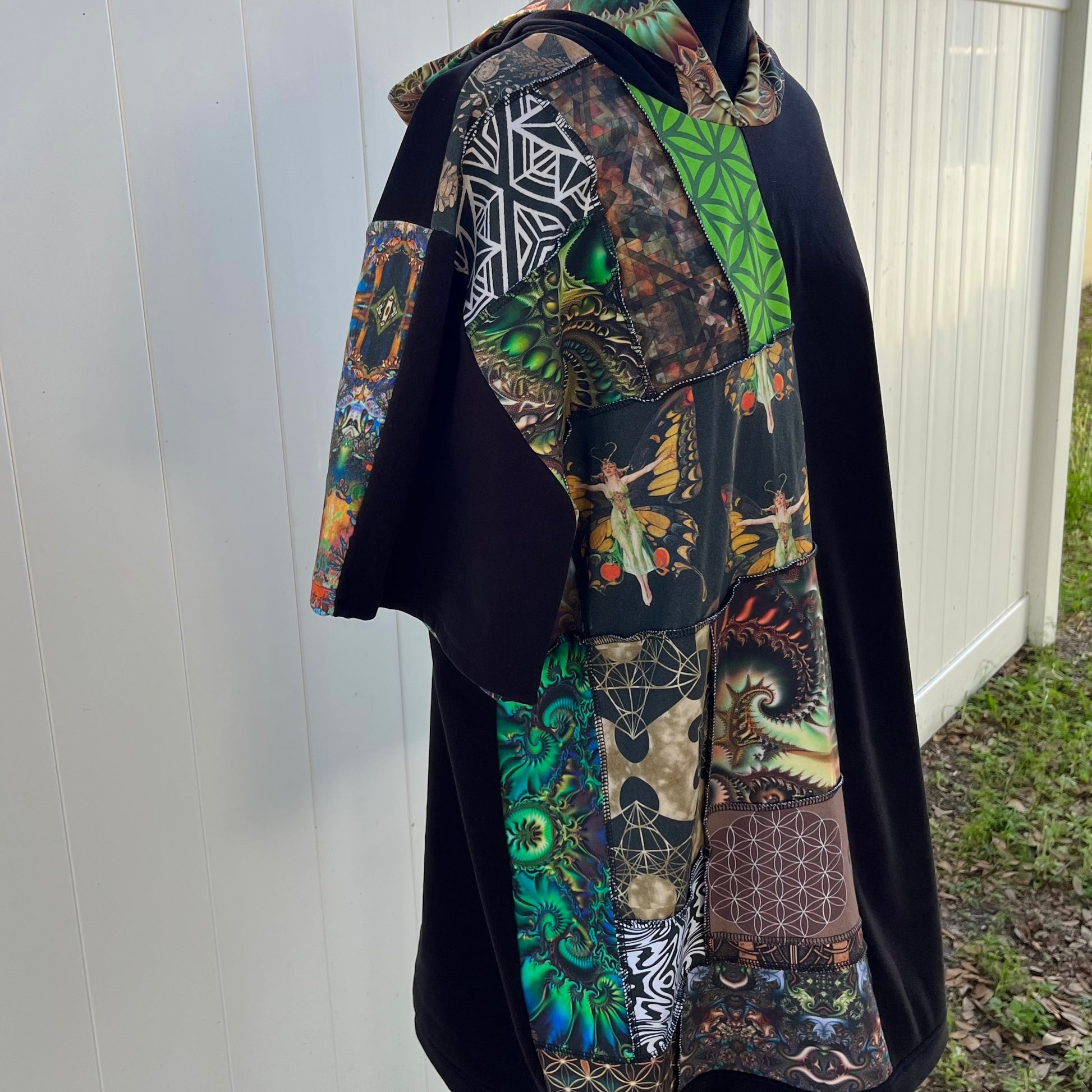 The black used on this one is an ultra soft & cozy microfleece, the patterned fabric is cotton spandex ♡