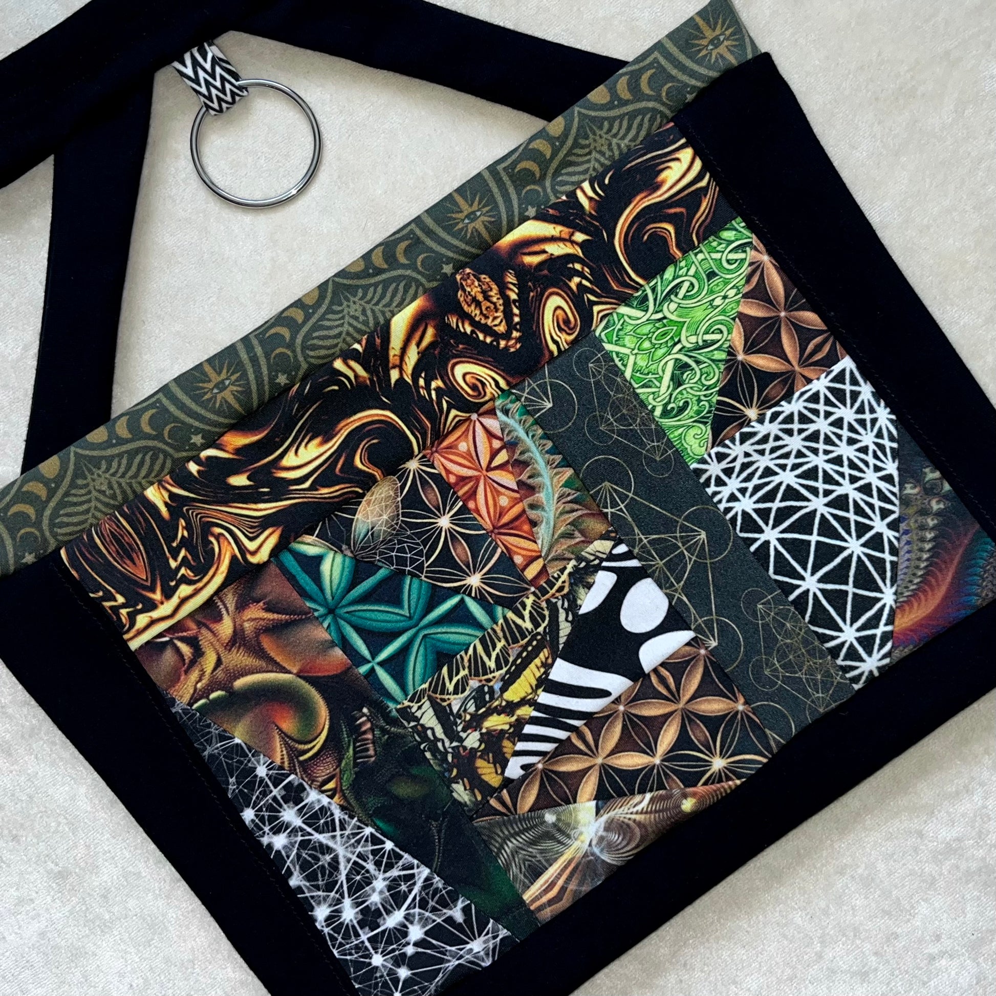 Mostly all patterned fabric is 93% Cotton 7% Spandex - It’s a 4 way stretch that’s very comfortable and allows for movement & breathability while also holding you in just right, contents of solid fabrics vary because I tend to switch them up, but I normally stick with natural fibers. 99% of everything I make is fire safe and can confidently be worn while flowing with fire props. Feel free to email me if you have questions about a specific one :)