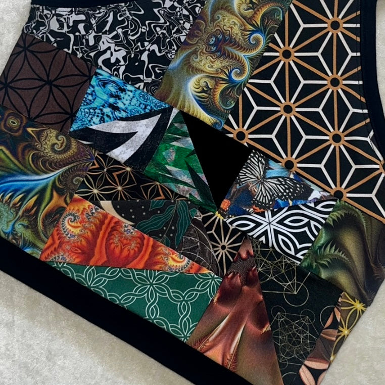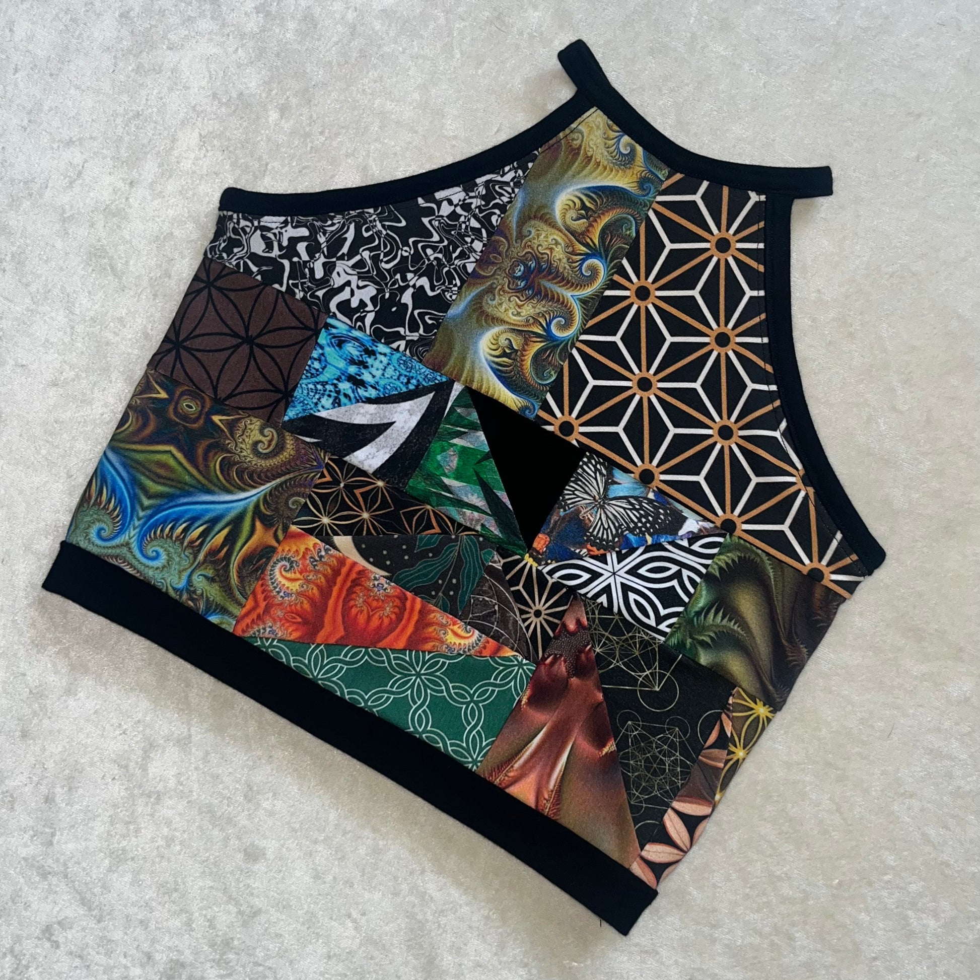 Mostly all patterned fabric is 93% Cotton 7% Spandex - Itās a 4 way stretch thatās very comfortable and allows for movement & breathability while also holding you in just right, contents of solid fabrics vary because I tend to switch them up, but I normally stick with natural fibers. 99% of everything I make is fire safe and can confidently be worn while flowing with fire props. Feel free to email me if you have questions about a specific one :)